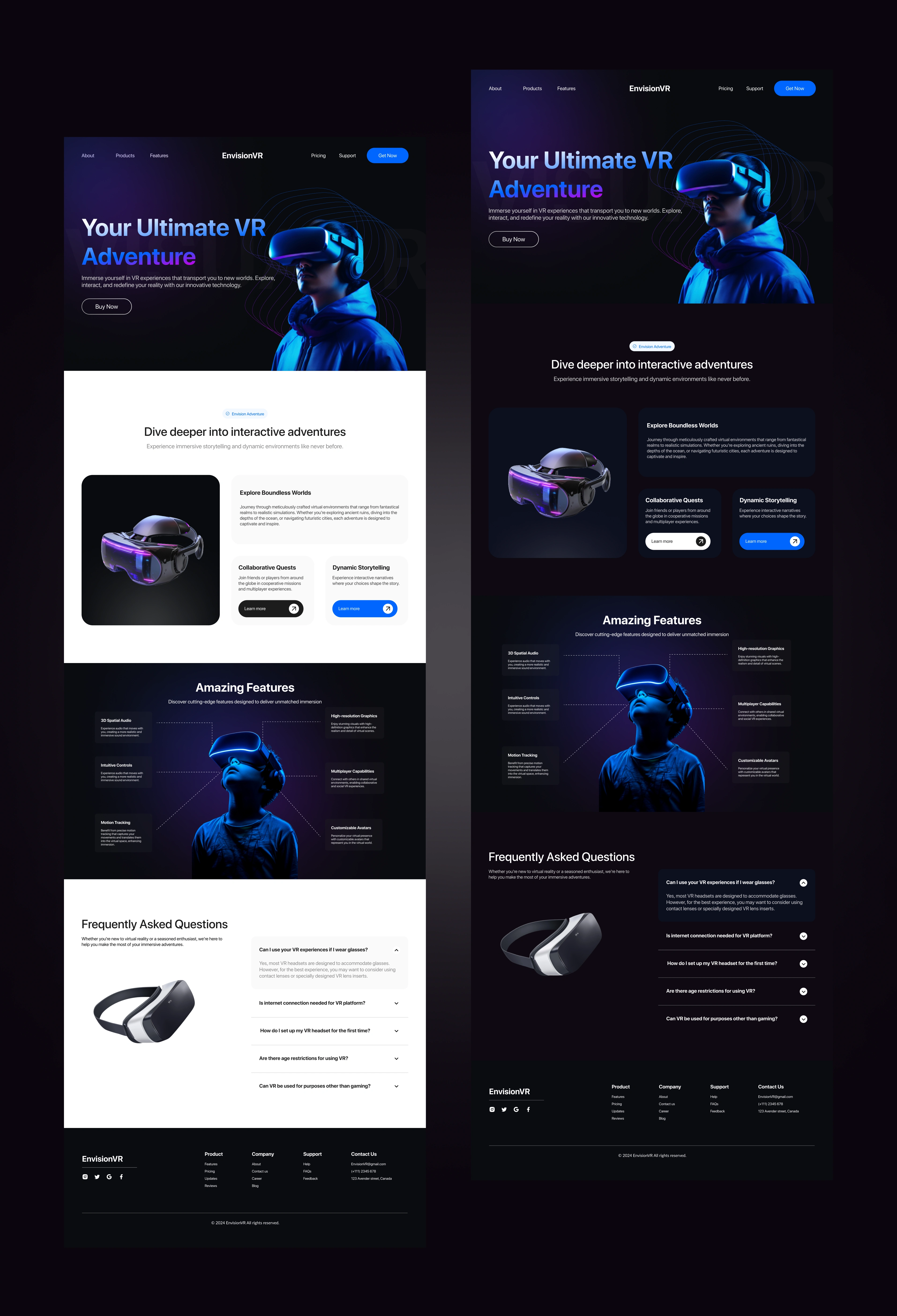 EnvisionVR is a visual reality company website. Its aim is to showcase EnvisionVR's advanced VR technology and features through an intuitive layout.
