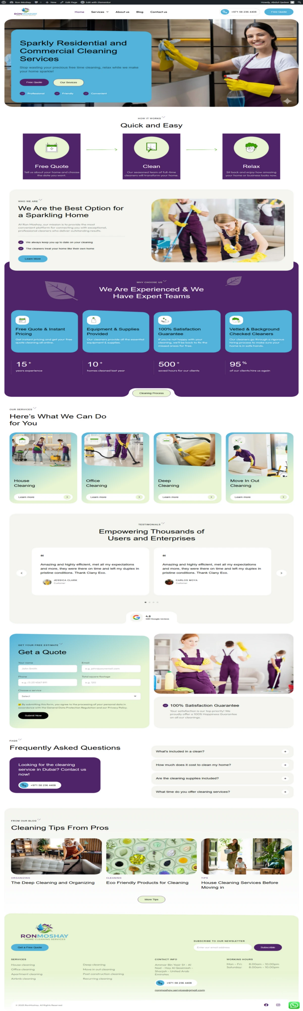 Created a clean, responsive site for RonMoshay Cleaning Services with clear listings, contact options, and strong branding to boost trust and lead generation.