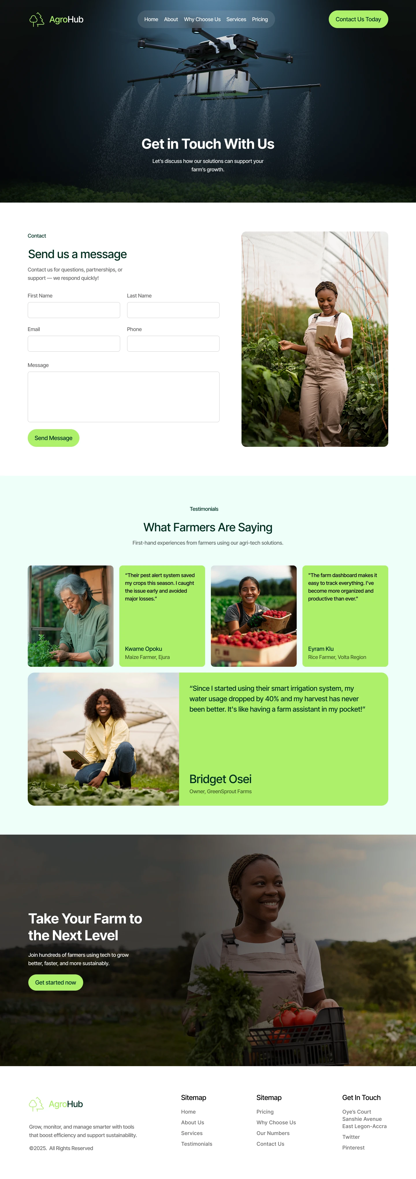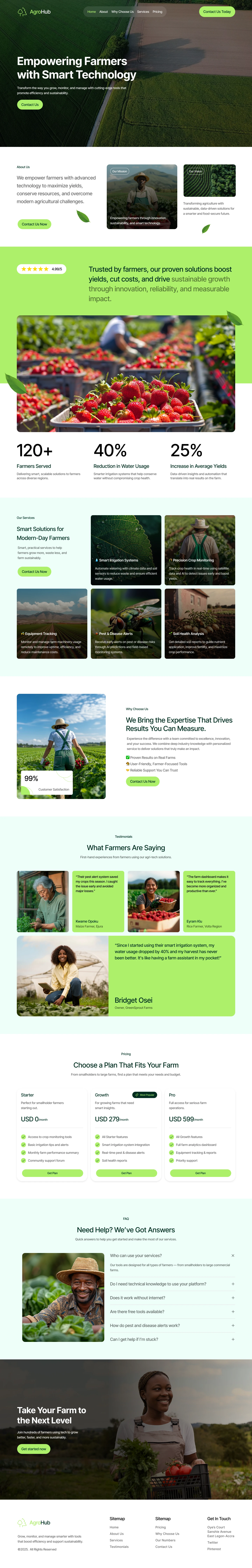 The result is a visually compelling and well-structured website design that clearly presents AgroHub’s services, builds credibility, and supports engagement with farmers and stakeholders.