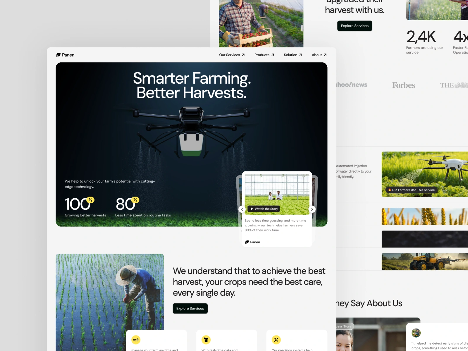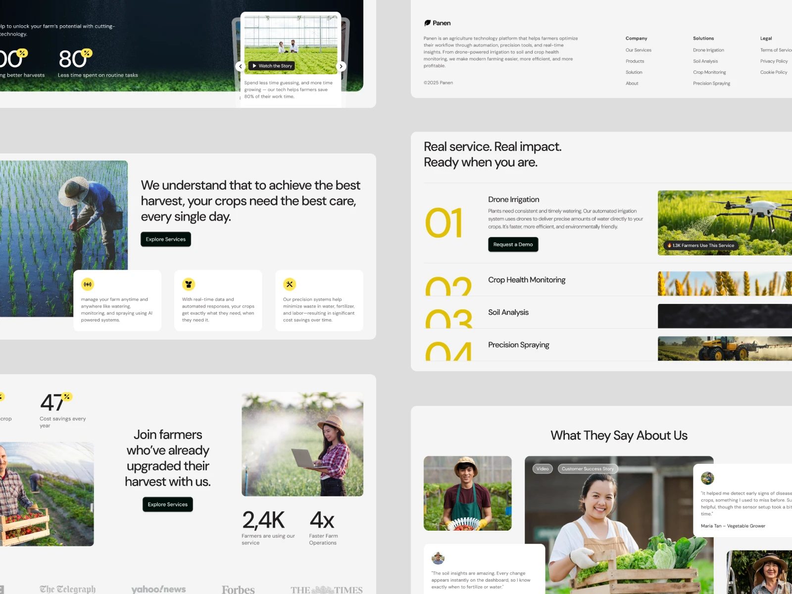 Panen is an agriculture technology platform that helps farmers optimize their workflow through automation, precision tools, and real-time insights. My responsibility as a UI/UX Designer is create landing page and other relatable pages.
