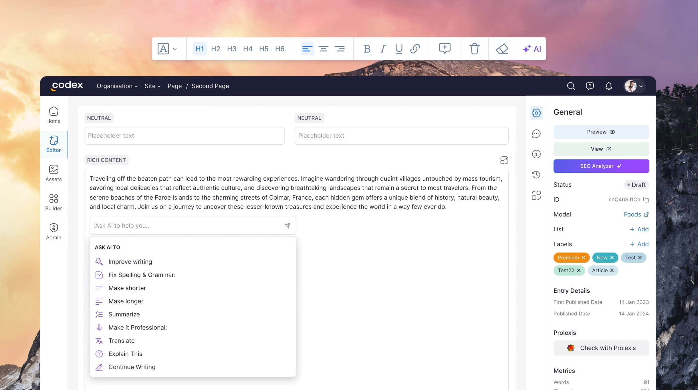 By implementing these targeted AI features, I designed a solution that streamlines content creation within Codex. The AI assists users in crafting strong titles, structuring their content effectively, and optimizing for search engines, ultimately empowering them to publish high-quality, well-received articles.