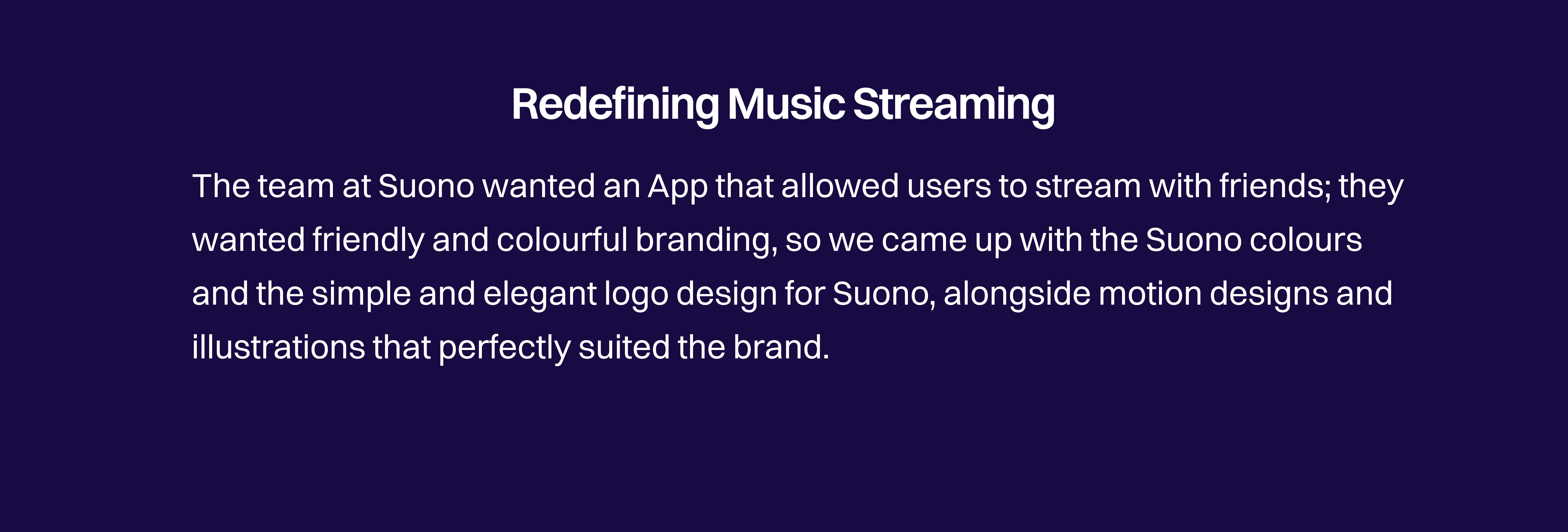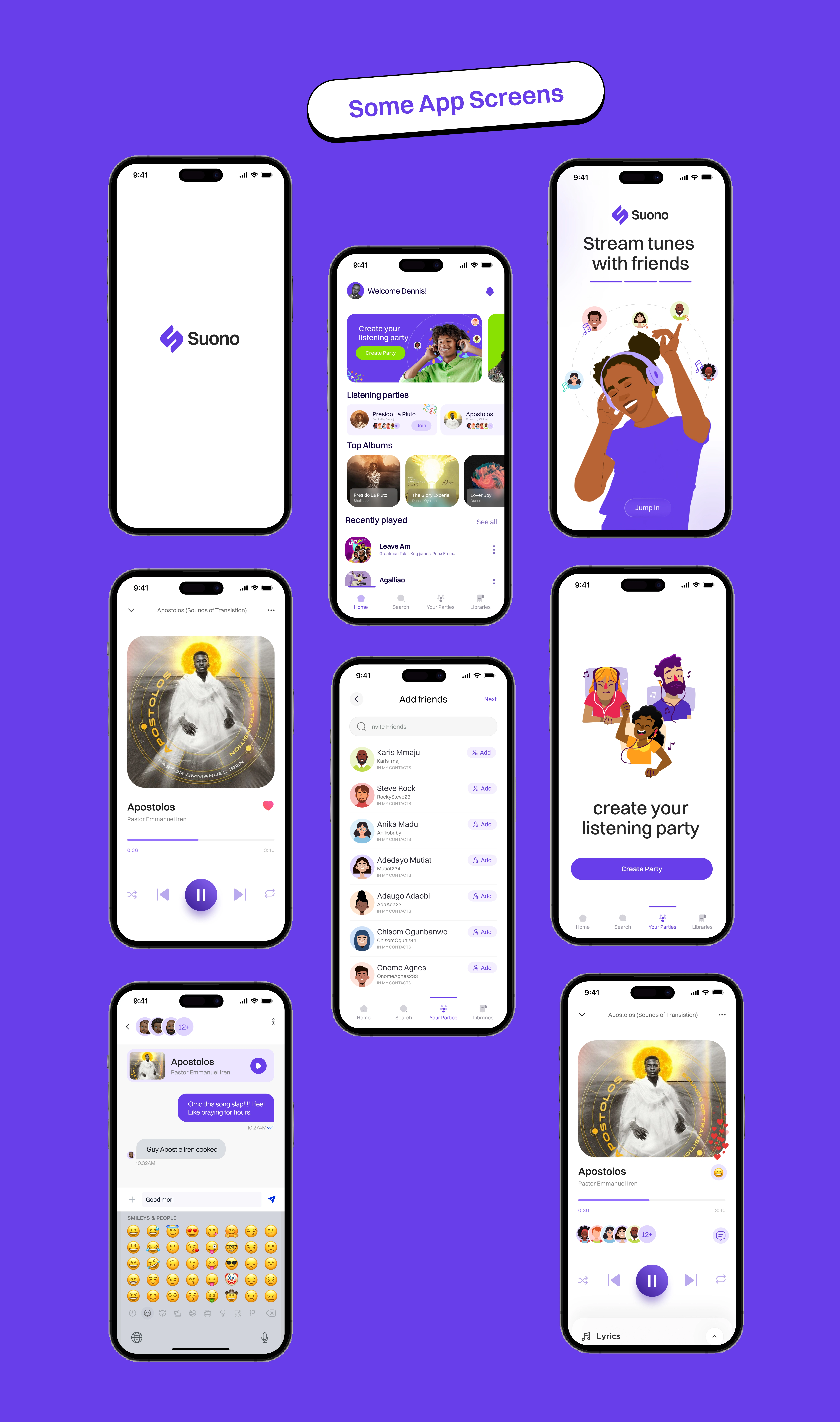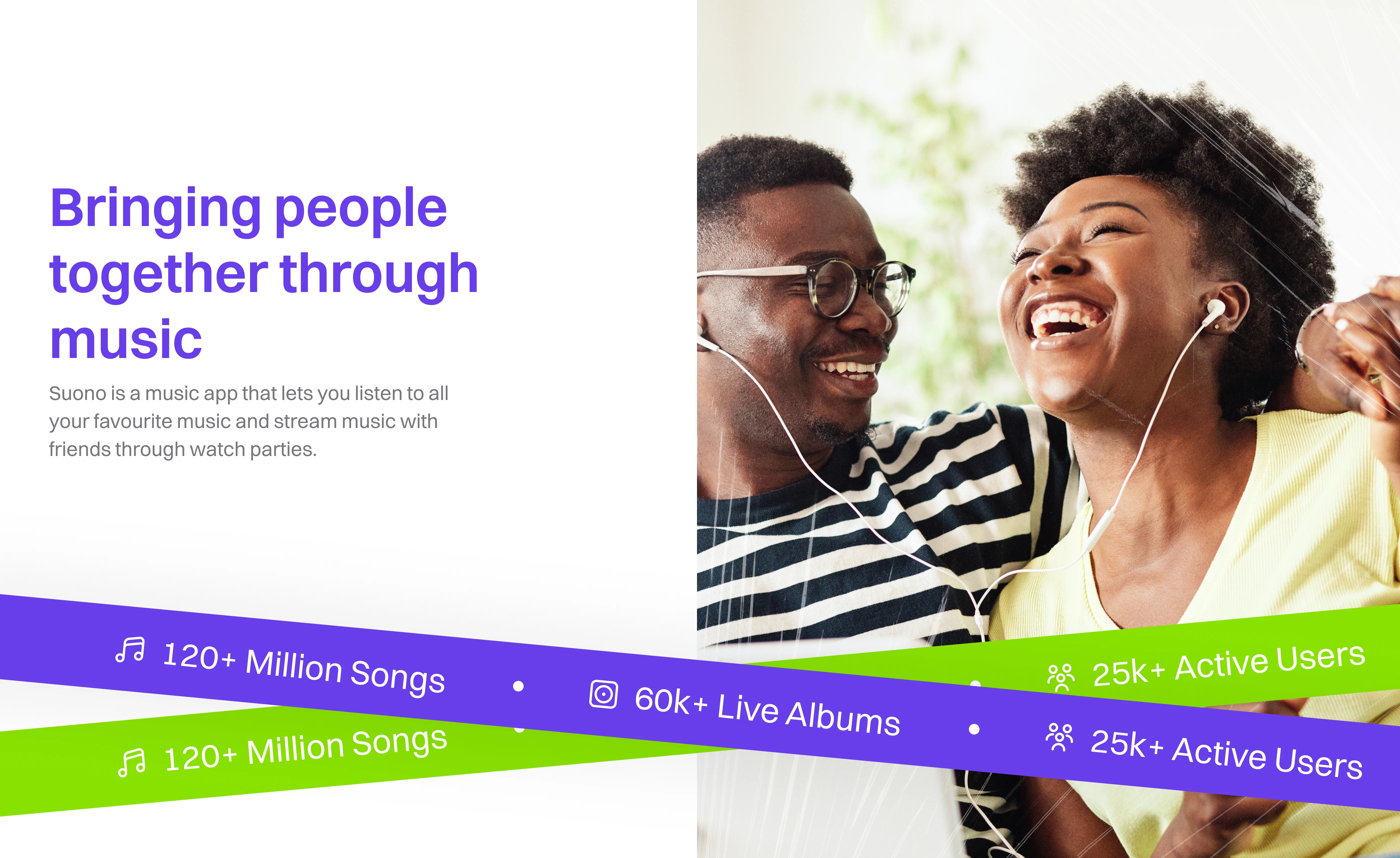 Suono meaning "sound" in Italian, is a music app that lets you listen to all your favourite music and stream music with friends through watch parties.