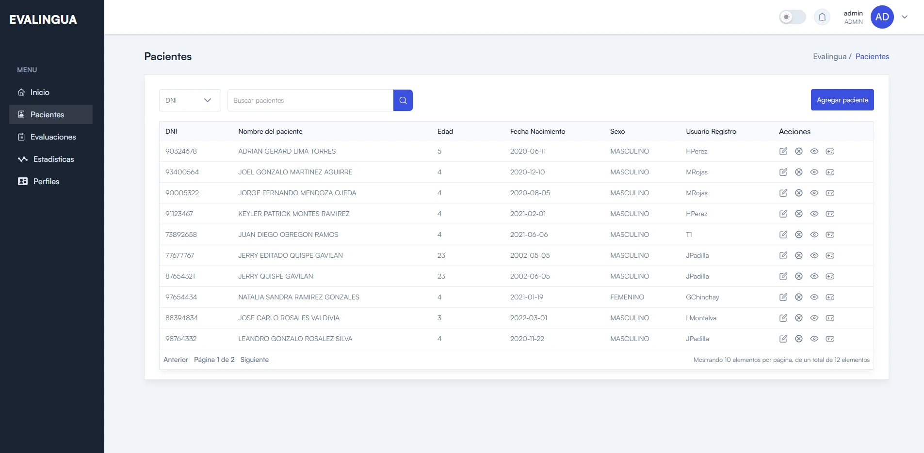 A web application that aims to reduce the evaluation times of language therapy patients.