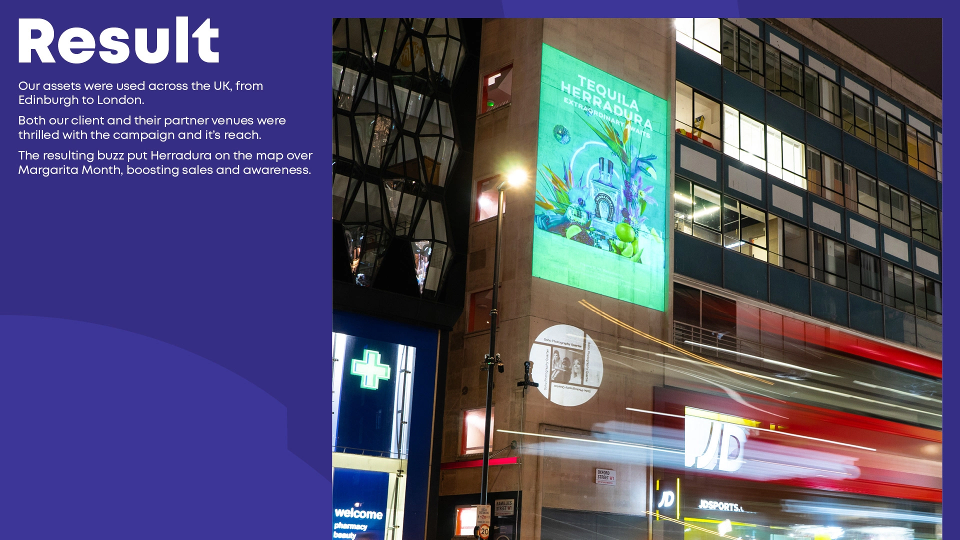 The brand were so impressed with the assets, that they proposed expanding the campaign with guerrilla projection across high traffic London hotspots. I created an additional film to become the key feature.