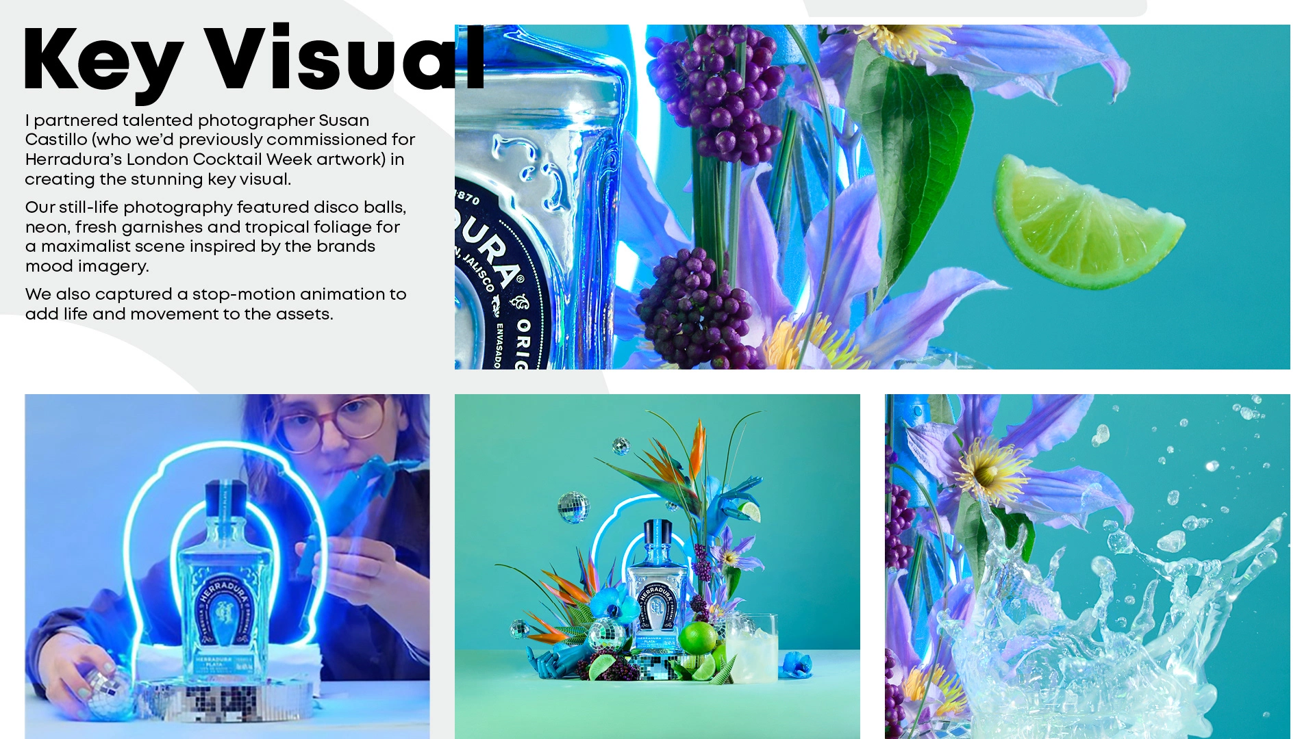 I built on their existing Extraordinary Awaits theming, art directing a shoot with the renowned Susan Castillo and creating a suite of assets, from animations to menus and an interactive venue map.