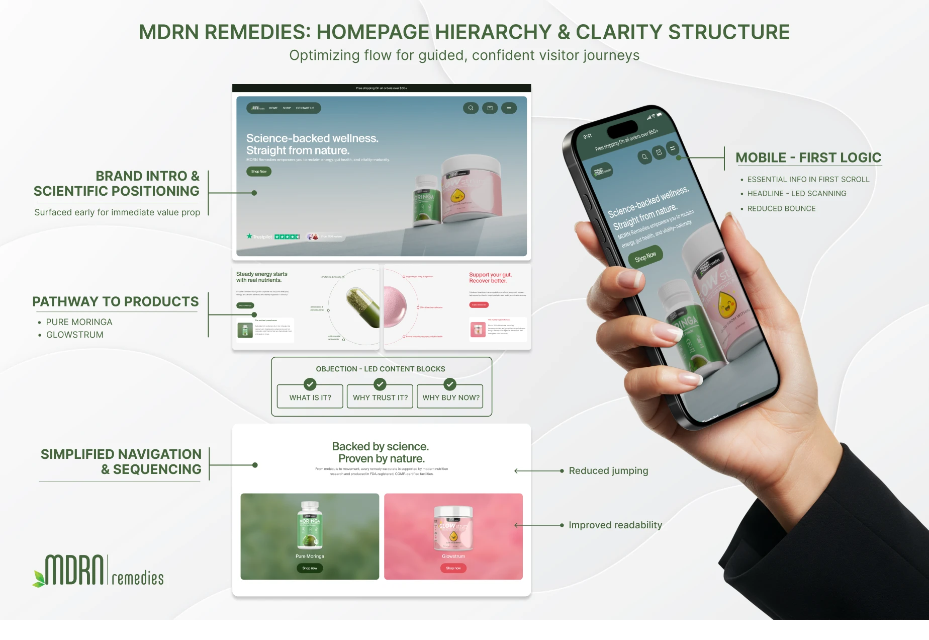 An ecommerce website designed to support paid traffic and conversion, with a strong emphasis on UX clarity, mobile usability, and funnel optimization.