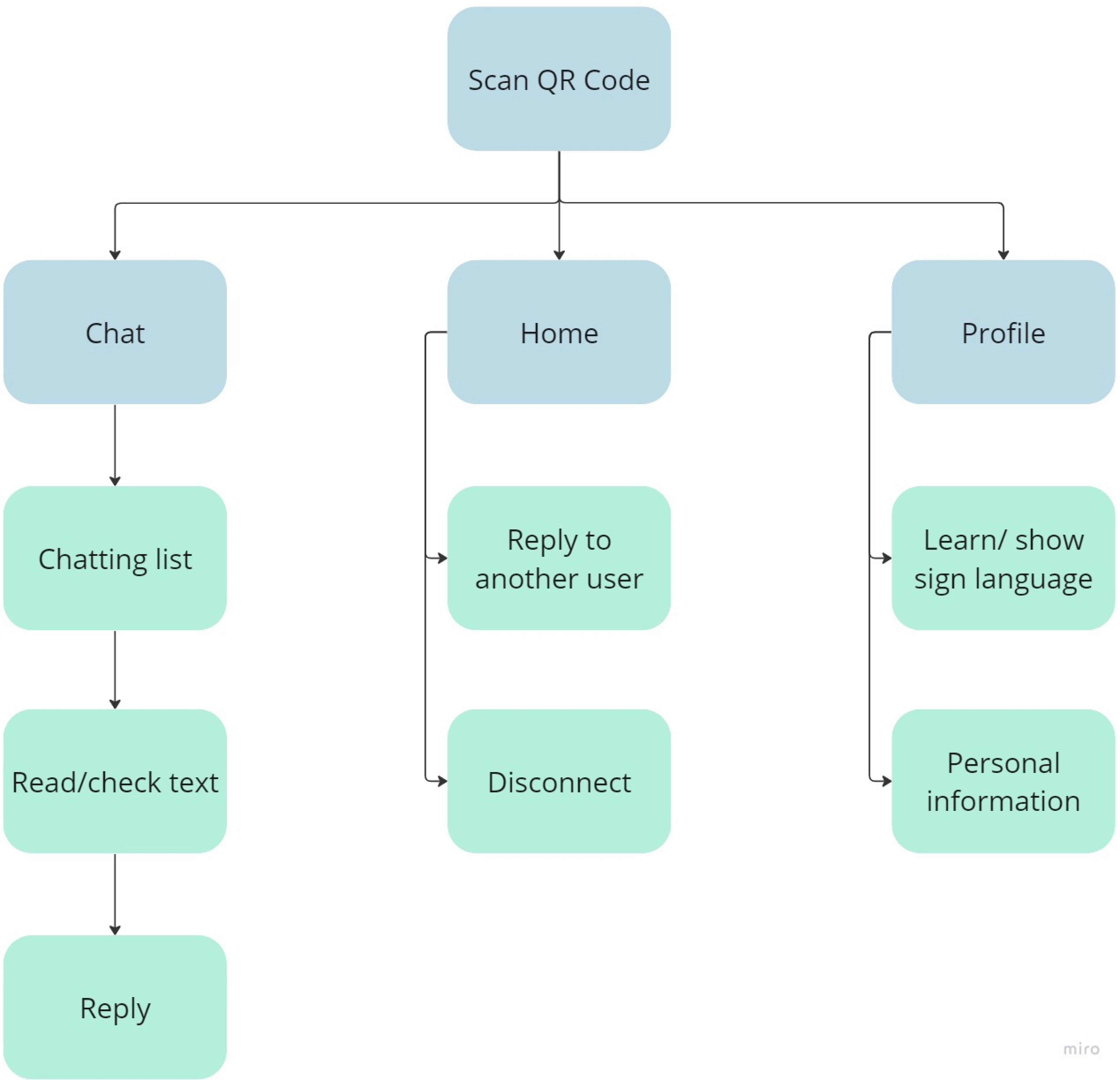 An abled person who installed the app can talk through a scanner as well as chat with a deaf person when he/she is not around or at home. The deaf user will use sign language to reply which will get translated into text.