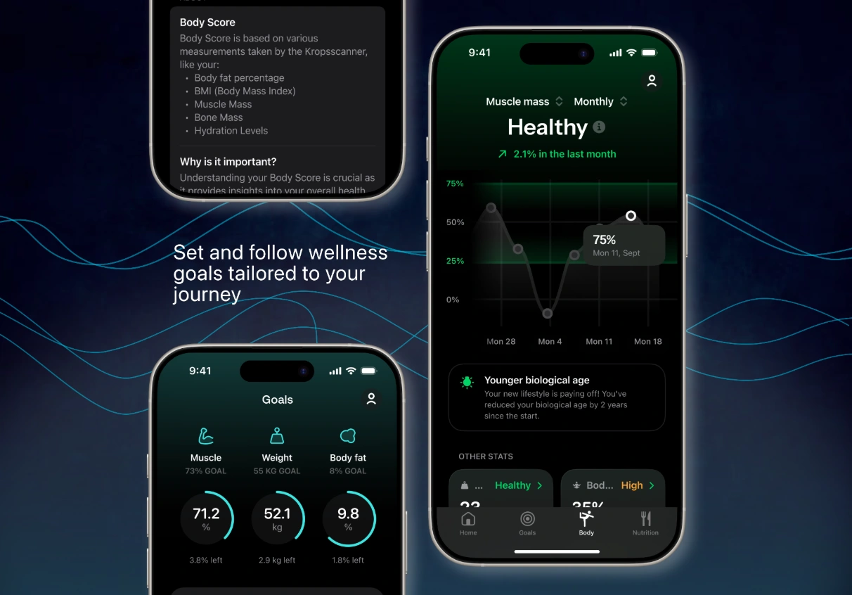ScanFit is an advanced health tracking app designed to work seamlessly with the Body Pilot smart floor scale.