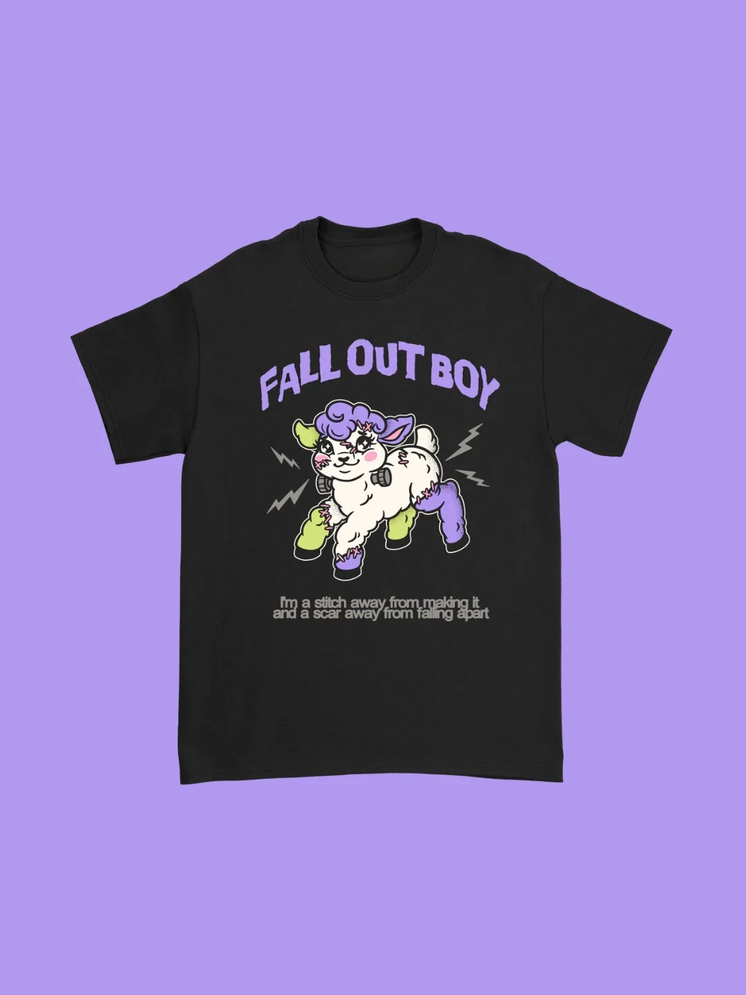 Frankenlamb merch design created for Fall Out Boy from their new Halloween drop 🖤 featuring lyrics from "The (After) Life of the Party", available now from their official online store for a limited time.