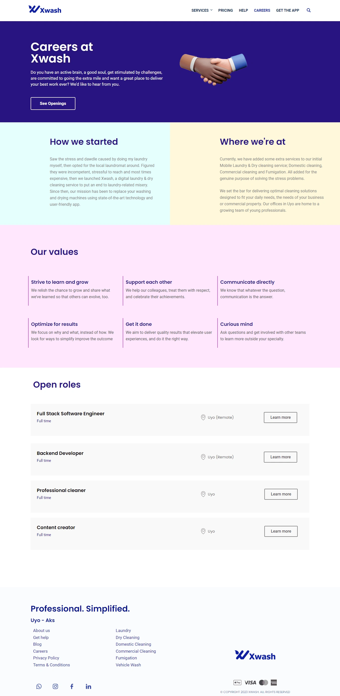 Working on Xwash.ng allowed me to showcase my full-stack web development skills while meeting the specific needs of a service-oriented business. The project was a success, achieving the client’s goals of increasing online engagement, boosting bookings, and delivering a seamless user experience.
