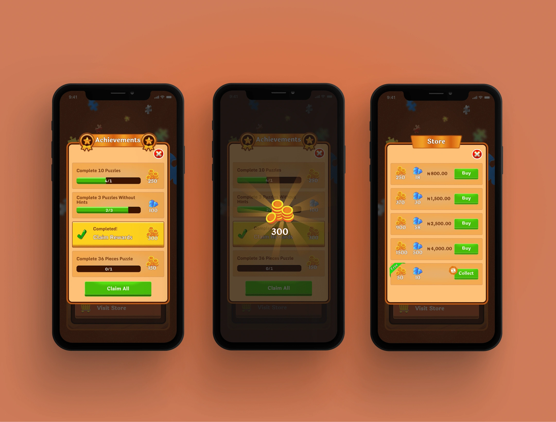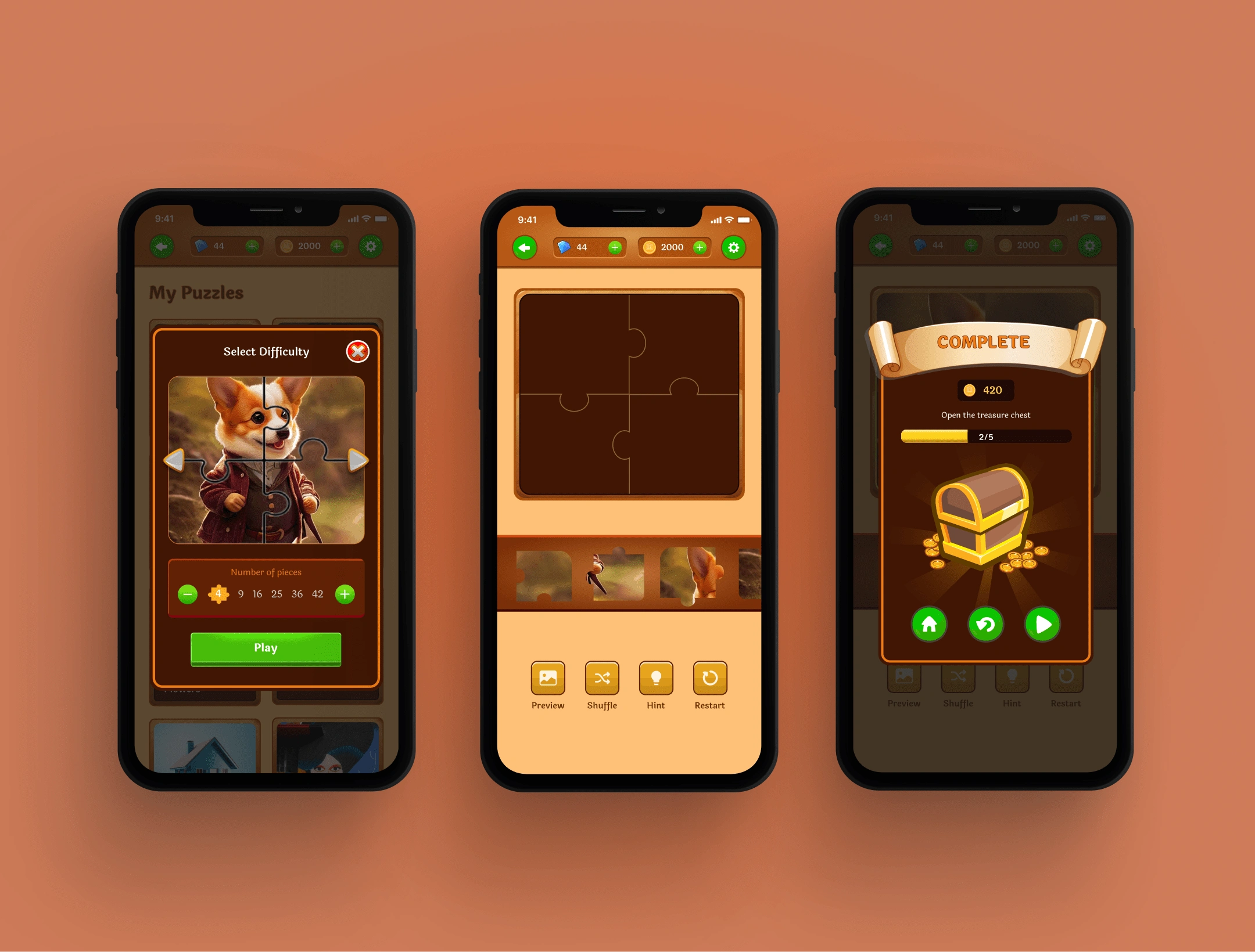 UI for a puzzle mobile game designed on Figma, focused on providing users with an enjoyable experience.