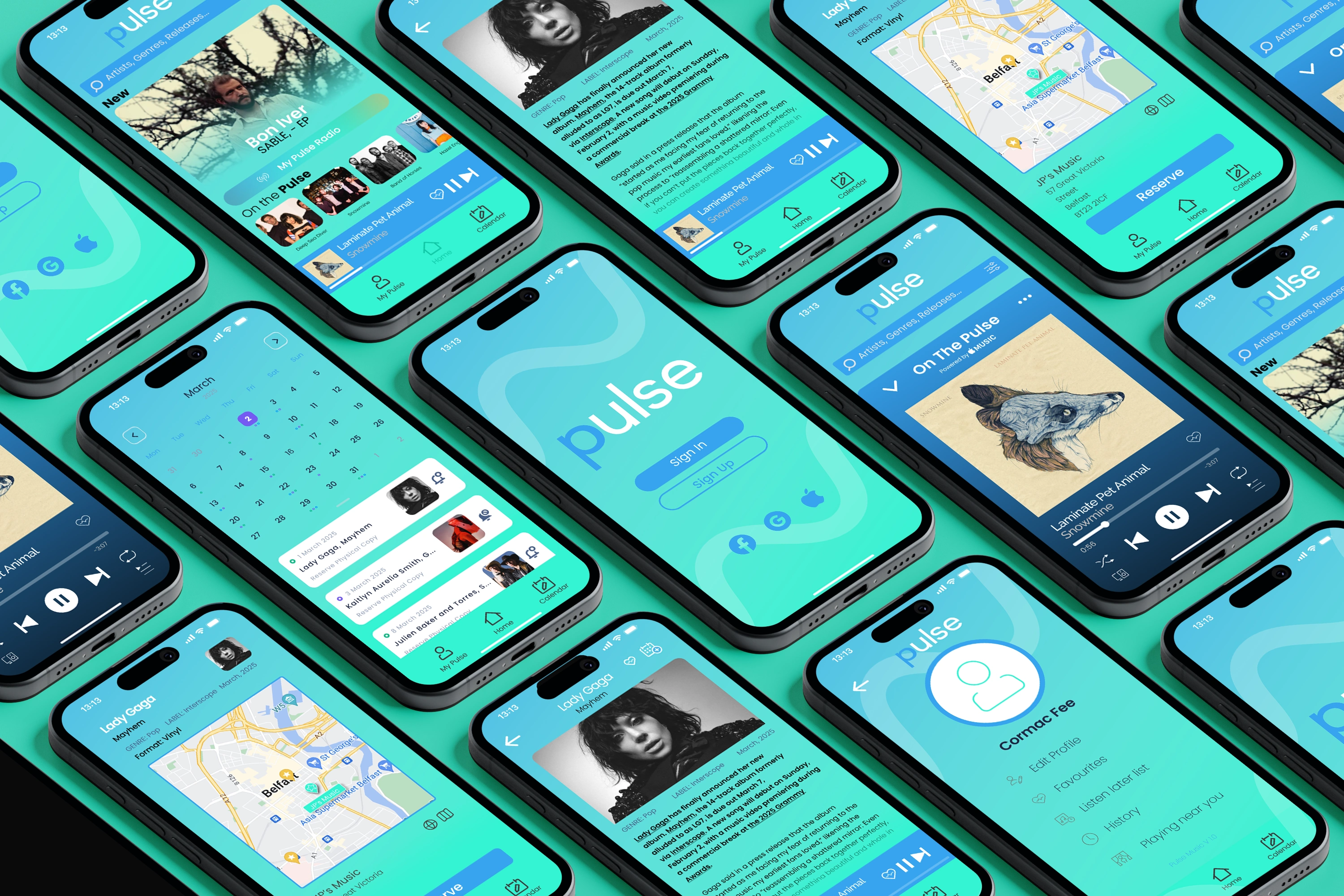 I worked on the Pulse app for 2 months as part of my Google Certificate in UX/UI. My primary task as a product designer was to design an app that encompassed a number of key features relating to a pre-generated project prompt. I completed a number of User Research tasks in order to refine my ideas, build a design system for my product and finally create the finished product - an app which puts music lovers front and centre.