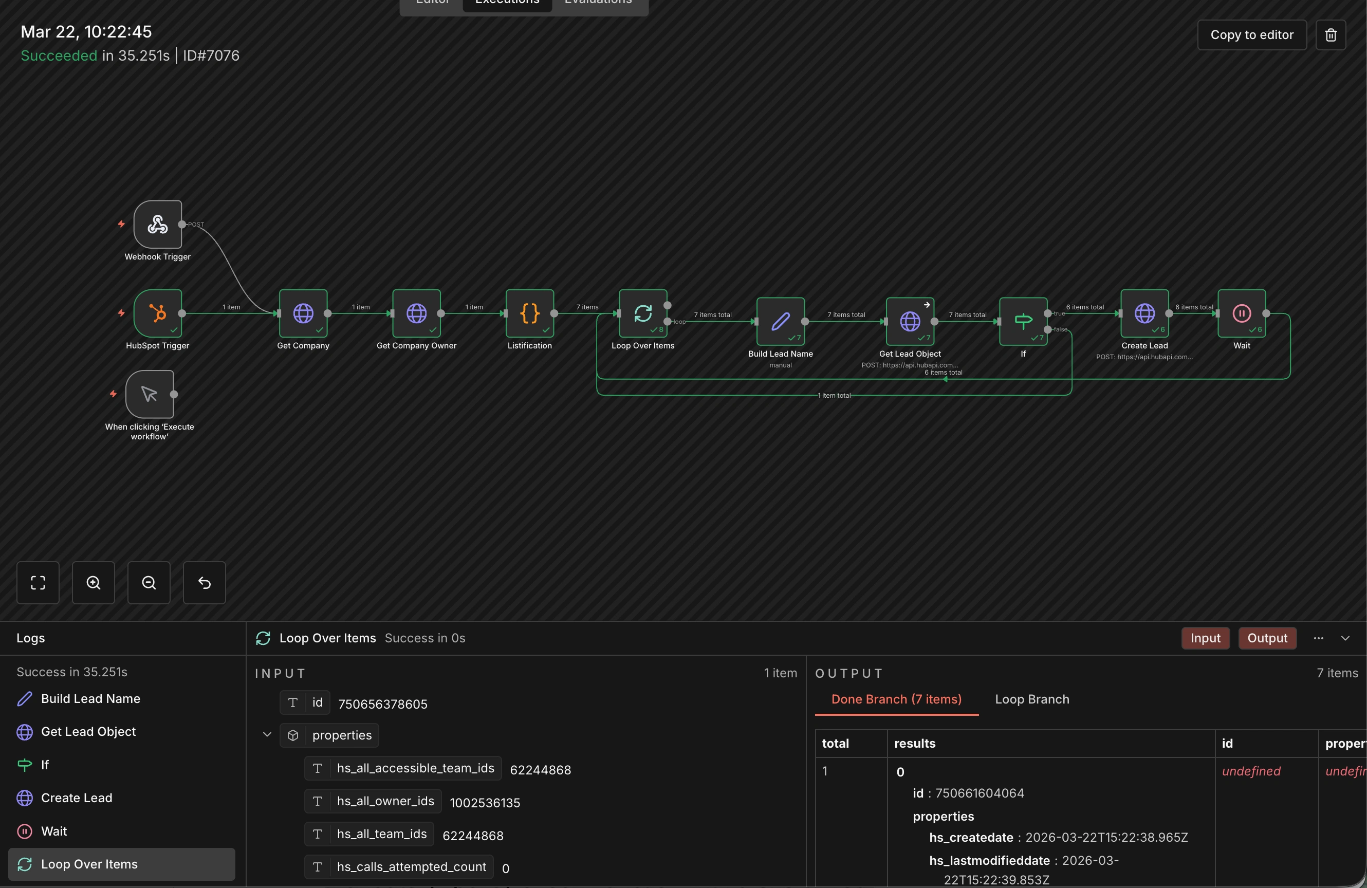 John is by far the best agent coder I have worked with. Not only he knows n8n, he knows the connecting platforms such as hubspot intimately so he can optimize workflows and make my api token use much more efficient
