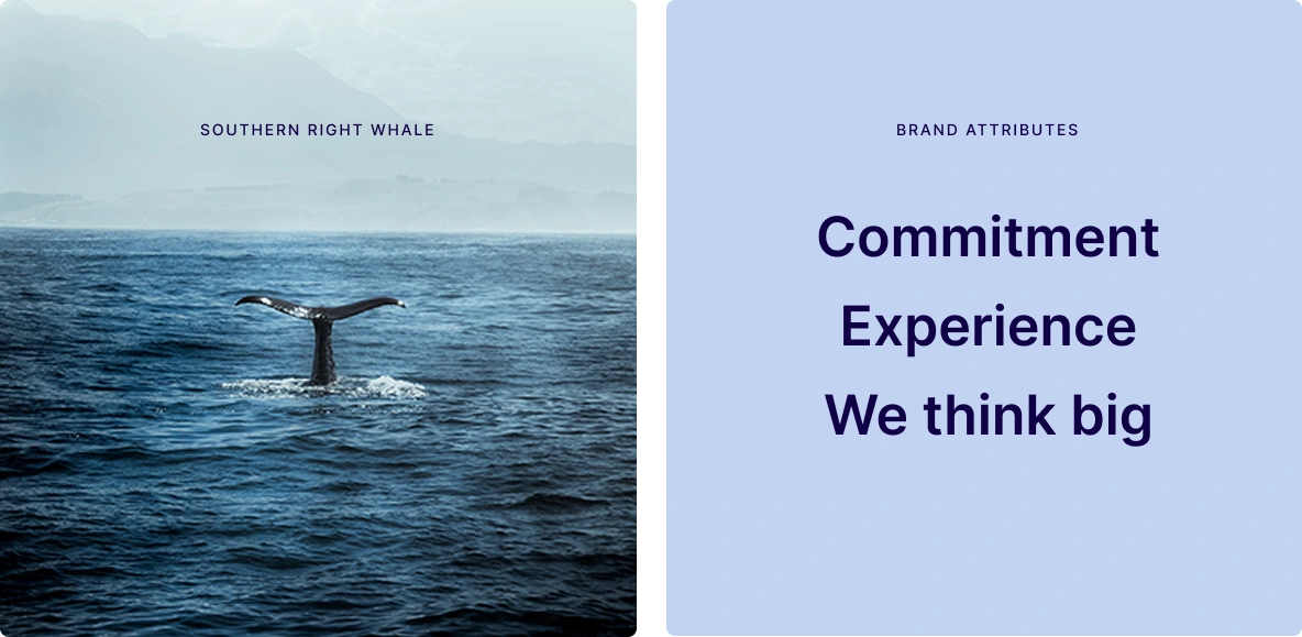 The logotype abstracts the Southern Right Whale in the shape of an ‘A’, reflecting bold presence and fluid motion, symbolizing the studio’s experience and approach to building digital products.