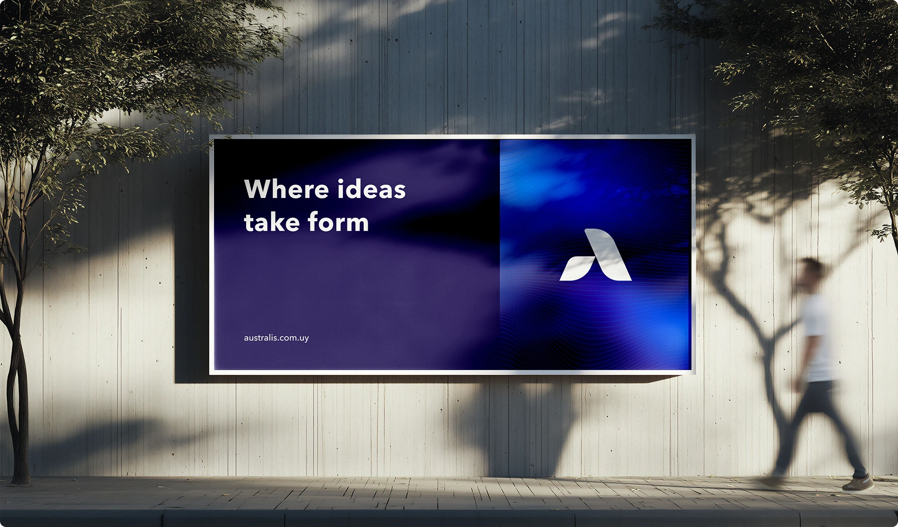 Inspired by the sea, Australis’ visual language uses bold blue shapes and fluid lines to communicate trust, stability, and a measured, calm presence.