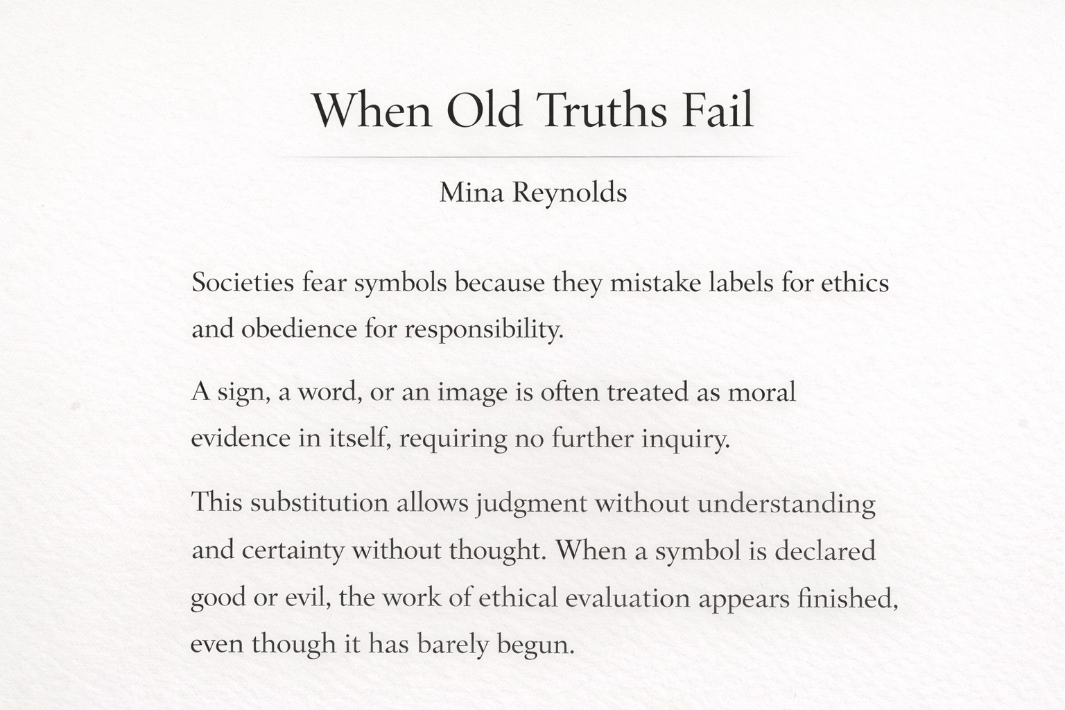 Original essay on symbols, morality, and responsibility—written for clarity, pressure, and ethical tension.