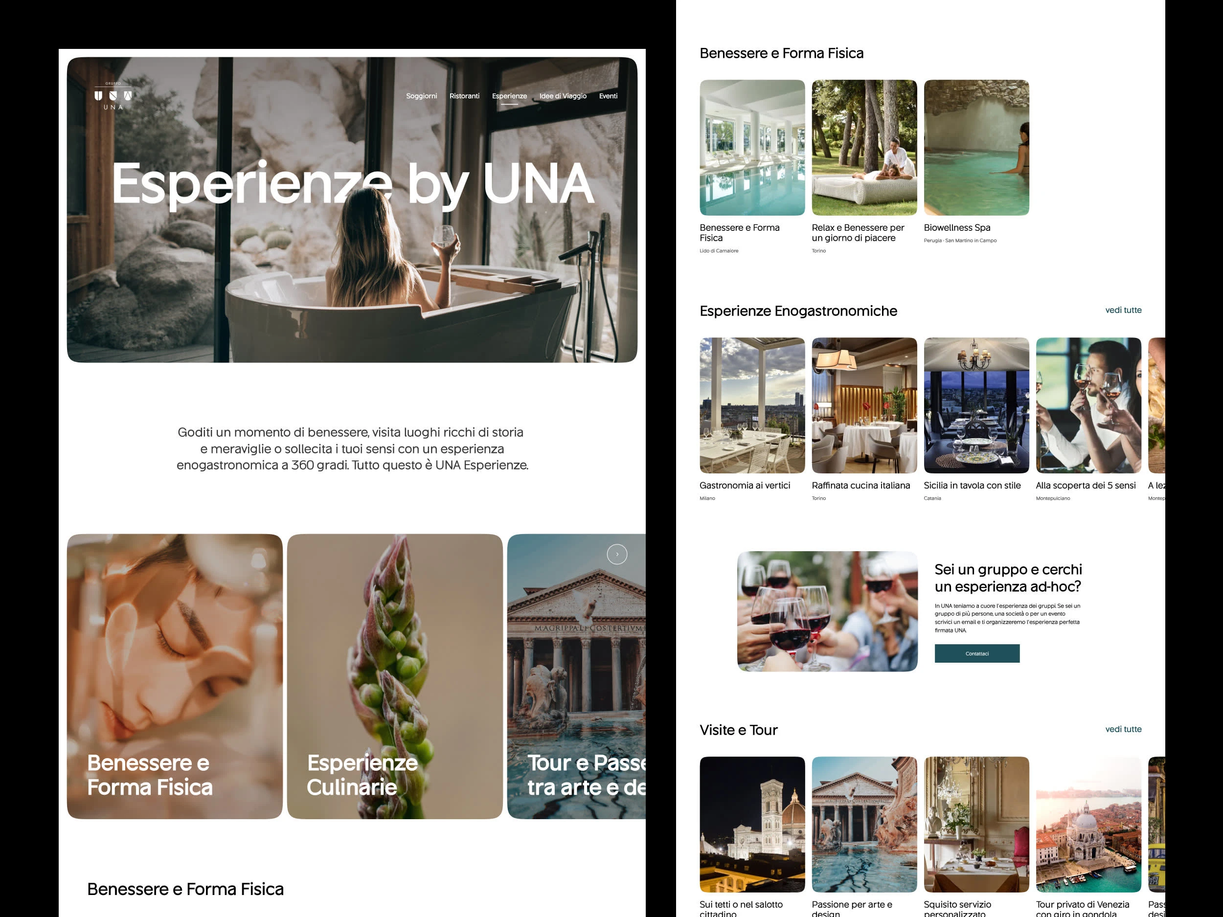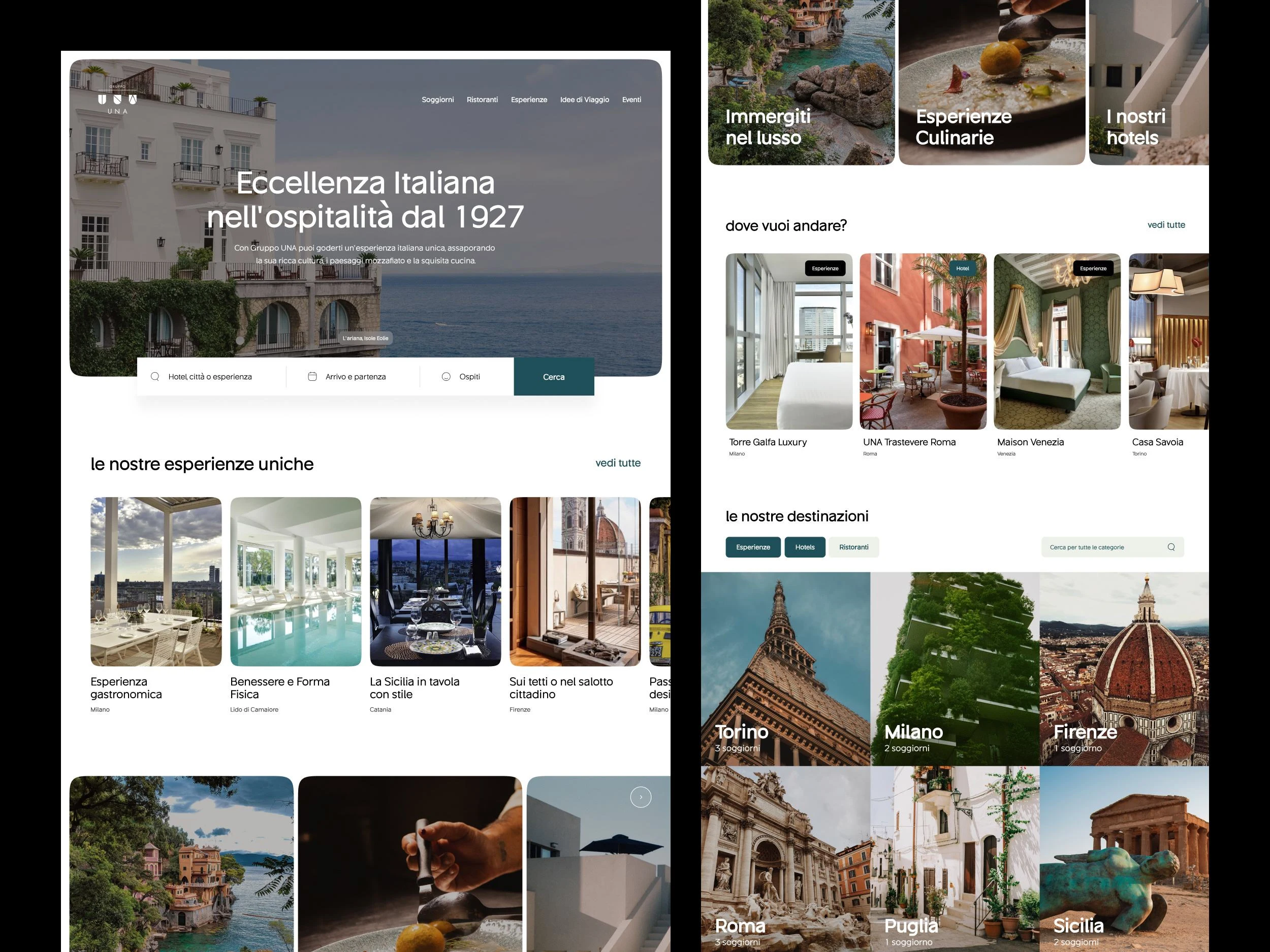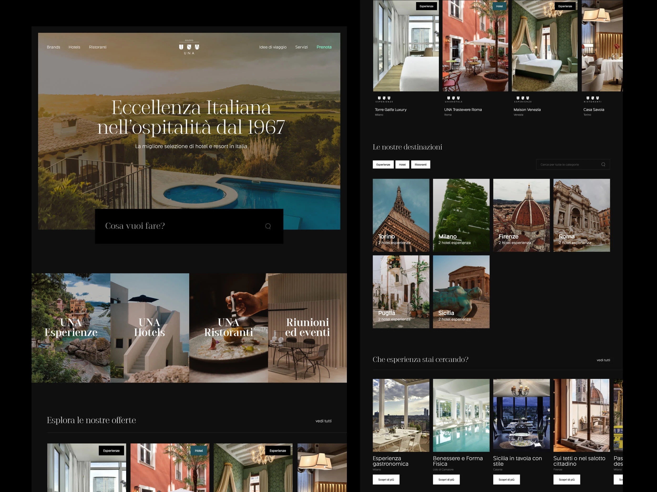 Design Direction, research and UX/UI Redesign for UNA Hotels, the Italian leader hotellerie in Italy, with the finest hotels and restaurants.