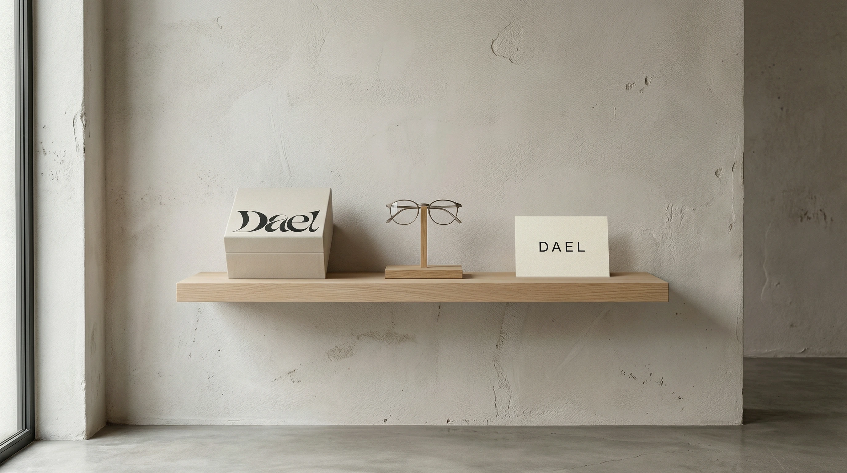 Dael, Watches & eyewear identity. Calligraphic logo, natural palette, no face in campaign. Soft power, total coherence. Made for people who already know.