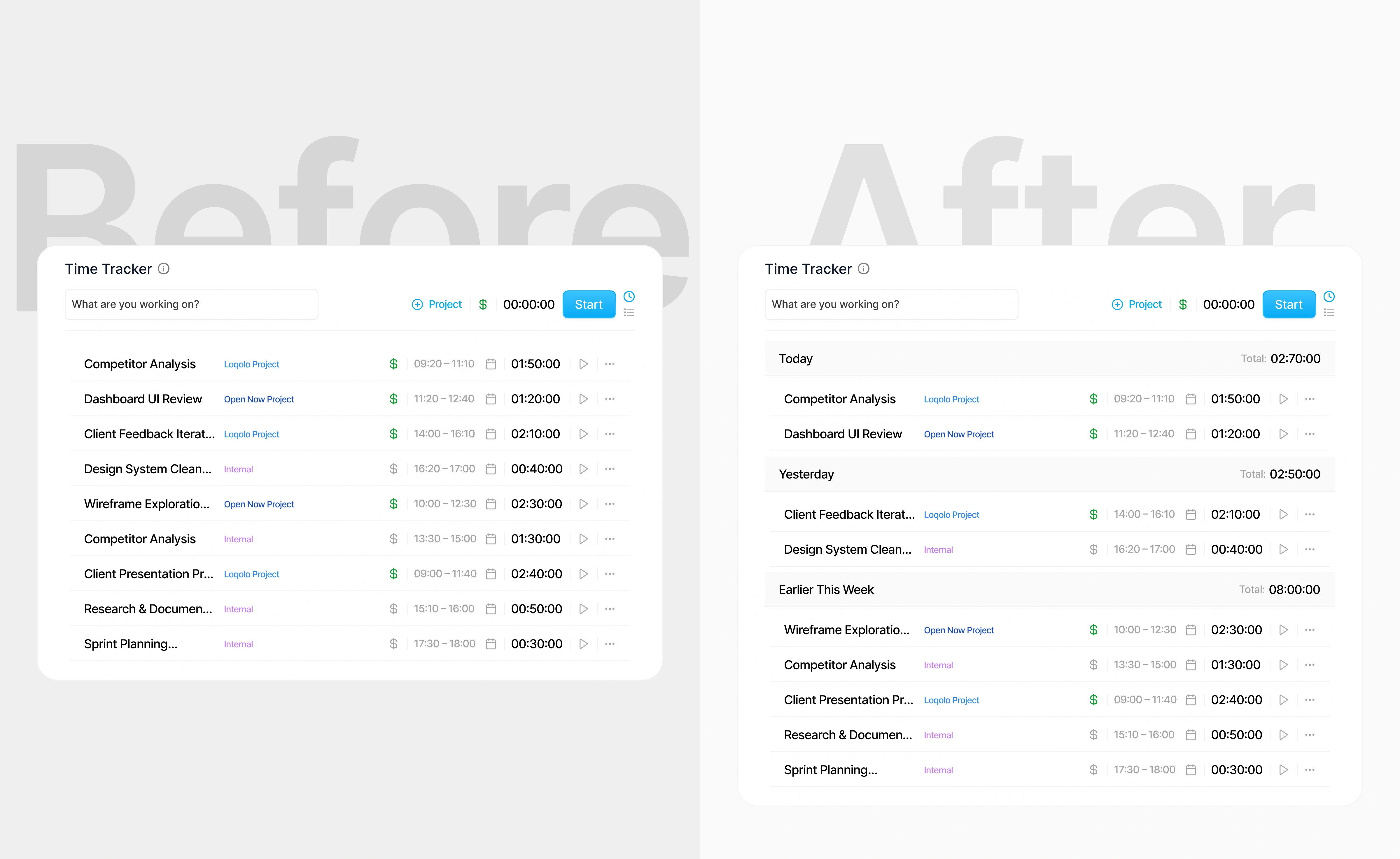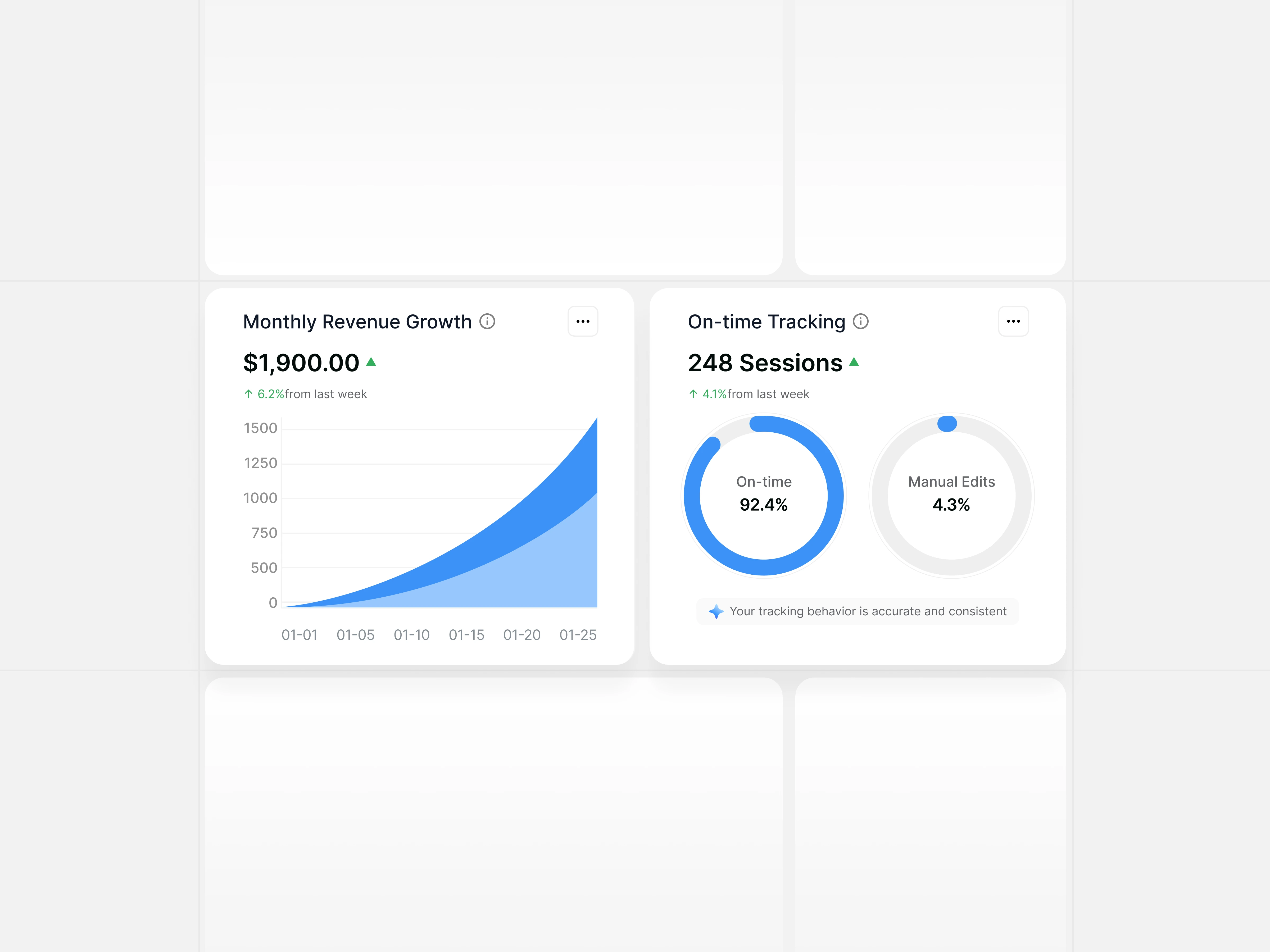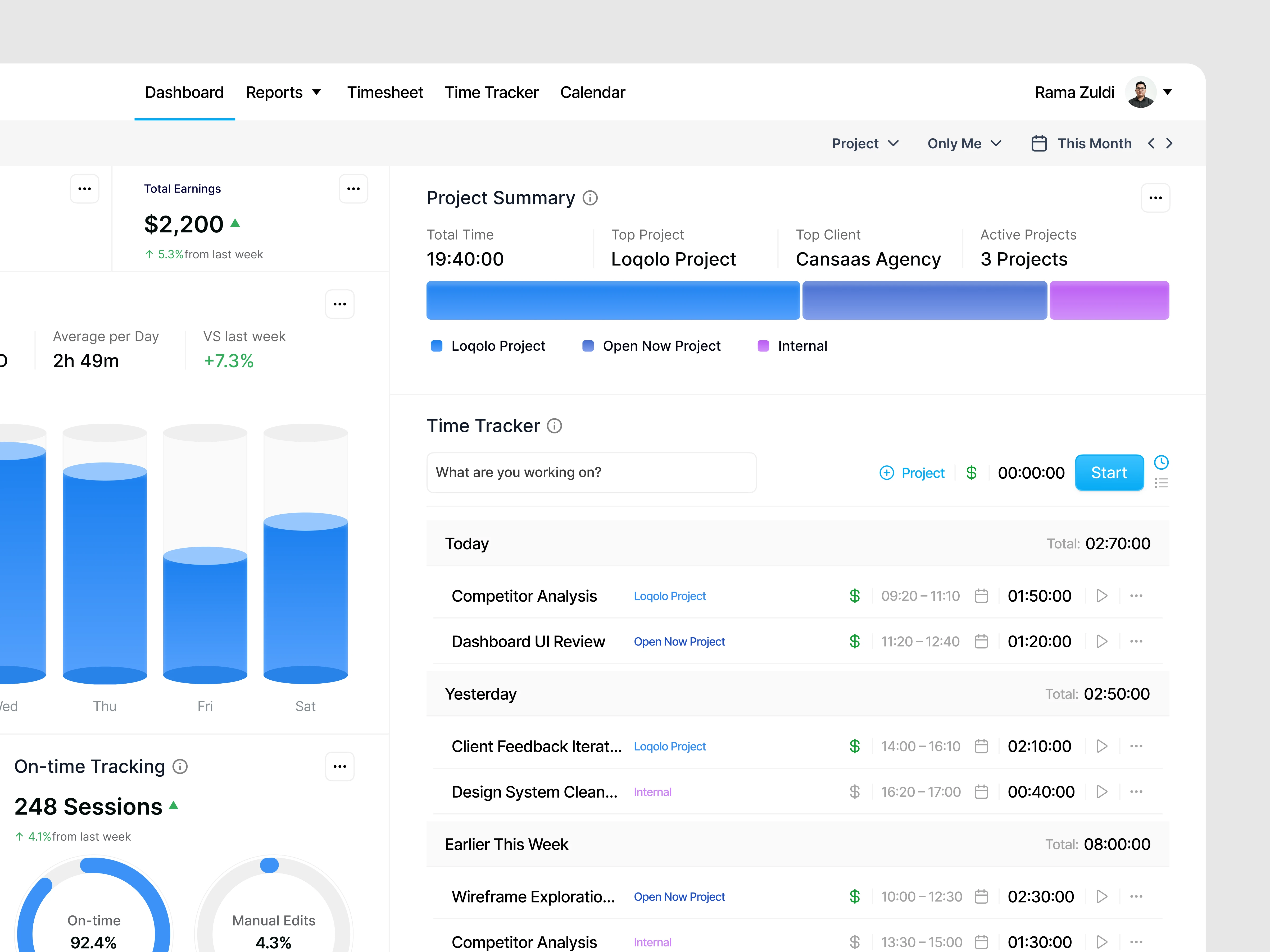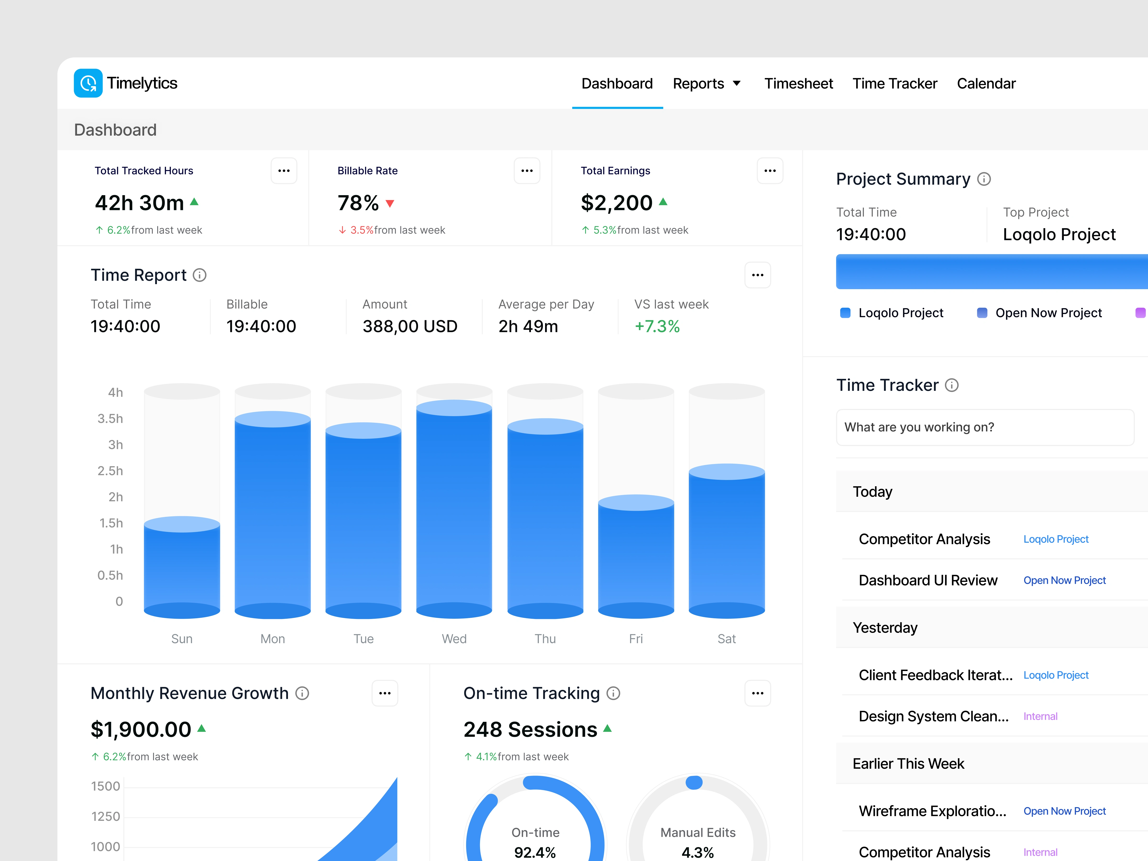 Many time tracking tools feel either too basic or overly complex. Users often struggle to understand where their time goes, how productive they actually are, and how tracked hours translate into earnings. The challenge was to present time, revenue, and performance metrics in a way that feels transparent, motivating, and easy to scan at a glance.