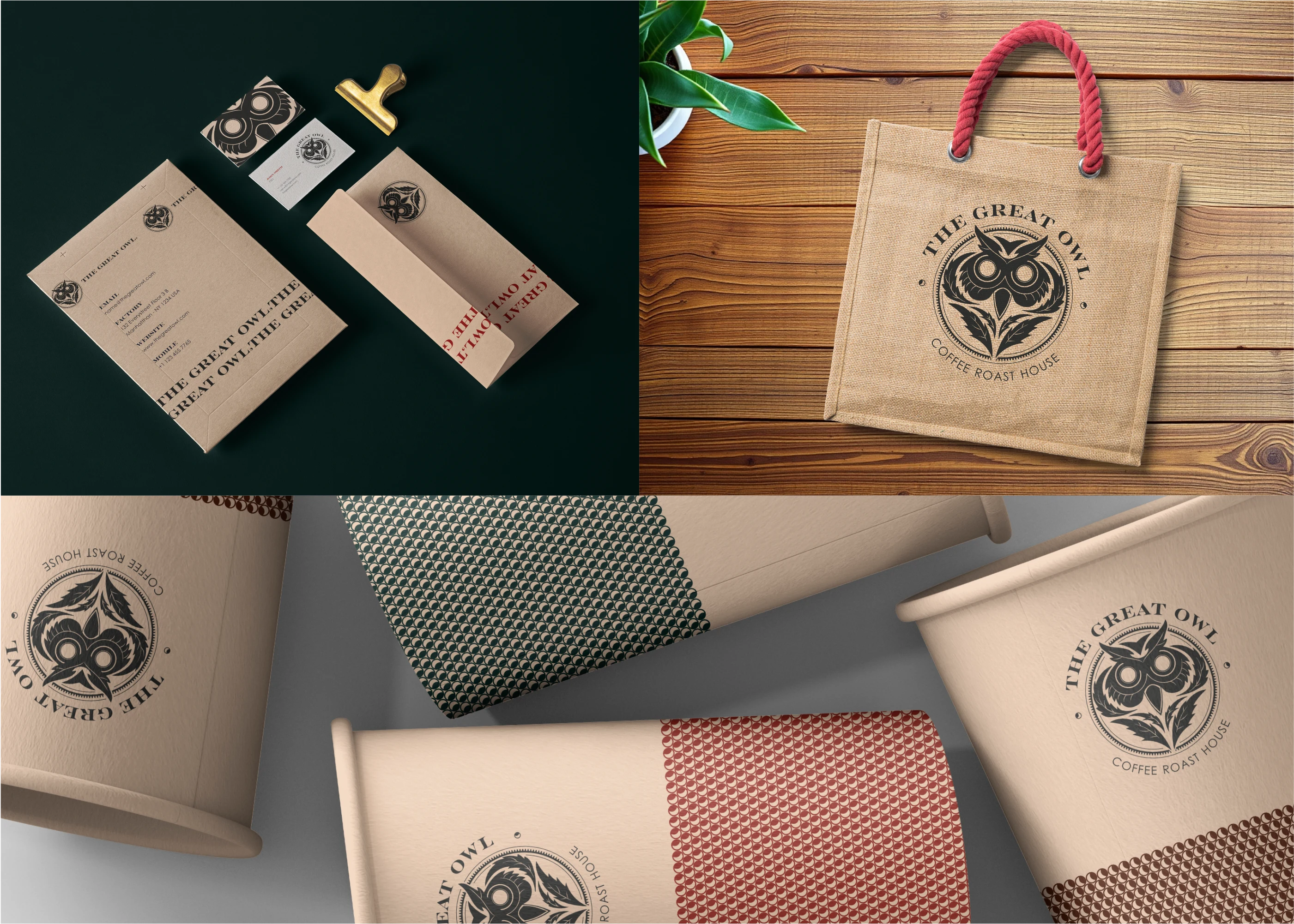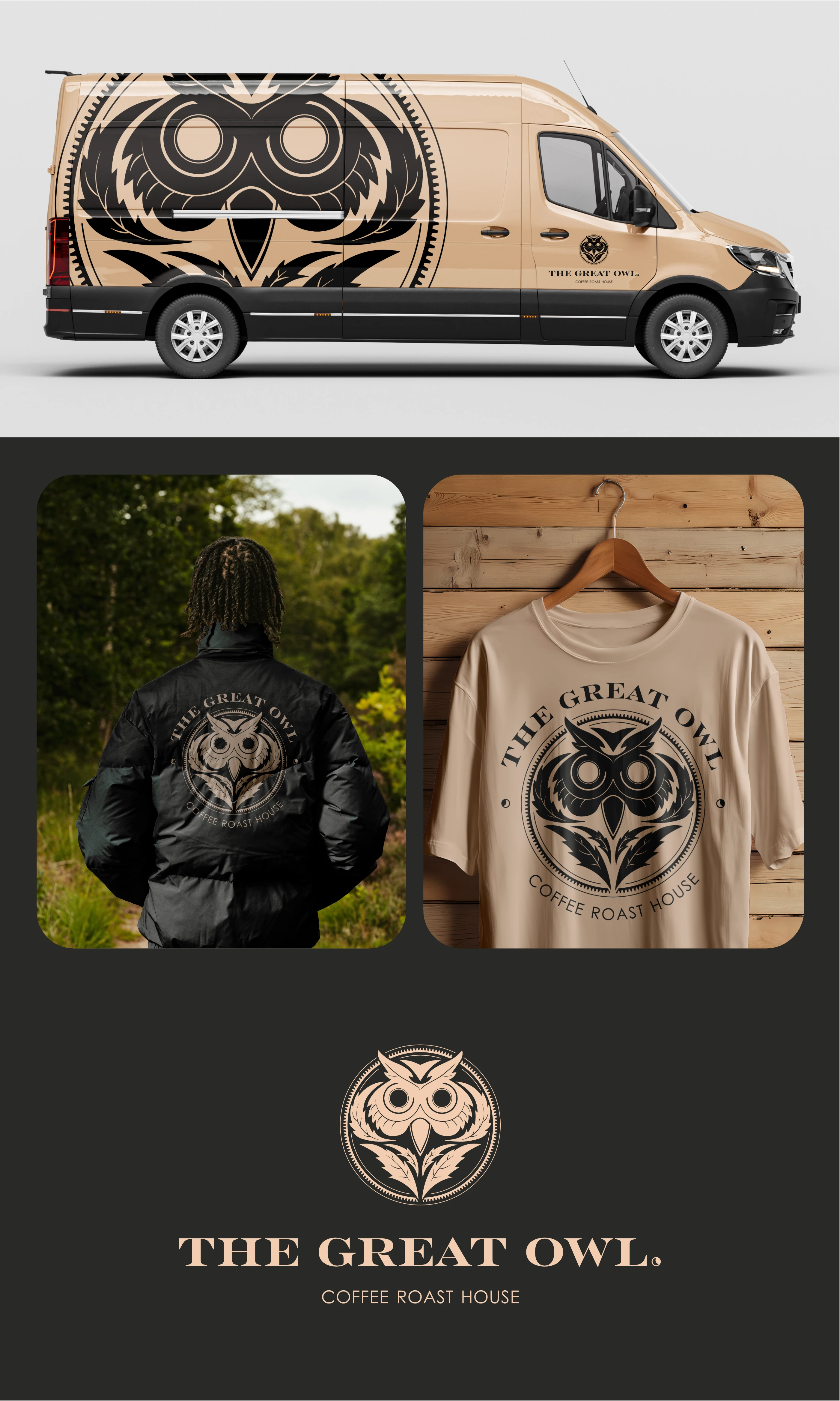 Logo and Brand identity design for Great Owl Coffee Roast House (conceptual project). I crafted a bold and expressive logo and brand Identity.