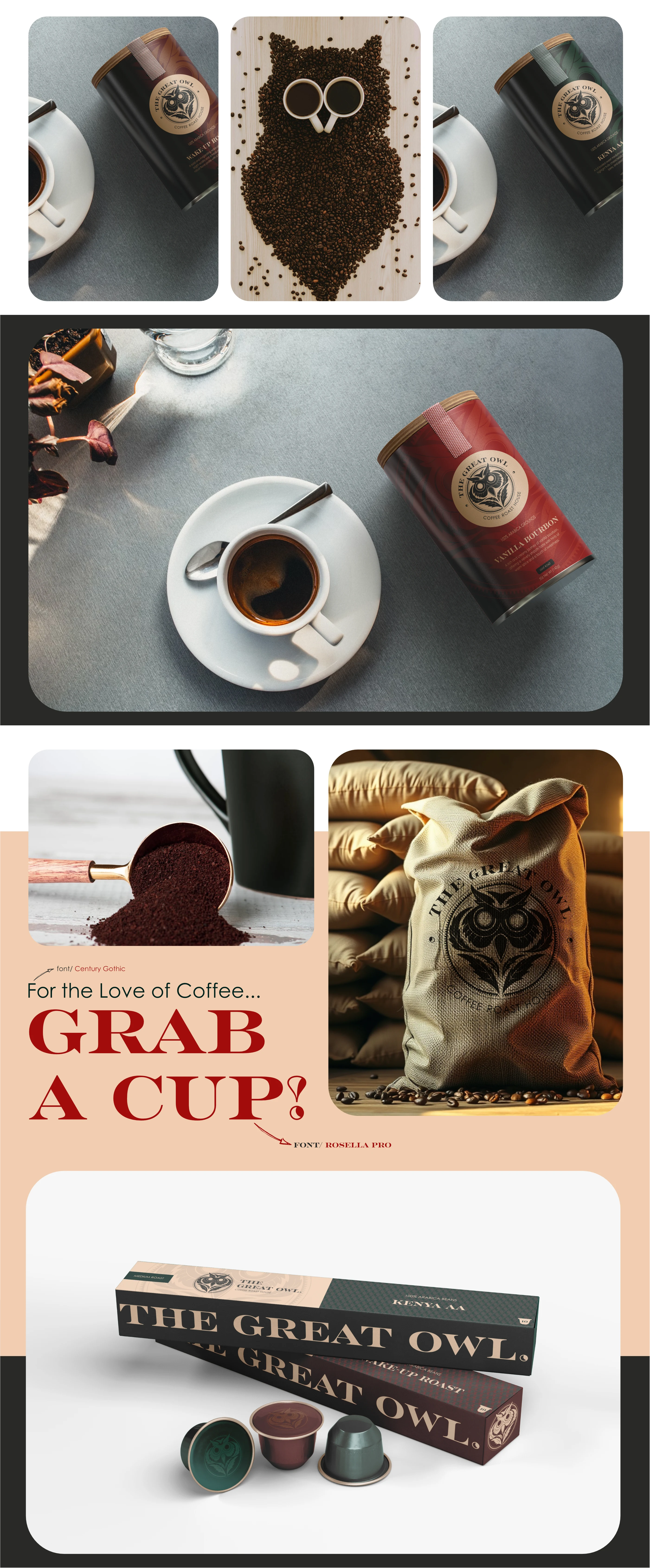 With The Great Owl, customers are guaranteed the perfect coffee experience every time - whether it's through their ready-to-drink canned beverages, freshly ground coffee, or premium whole beans. The goal was to design a brand identity that reflected their key message "For the early risers and the night owls—your perfect companion.