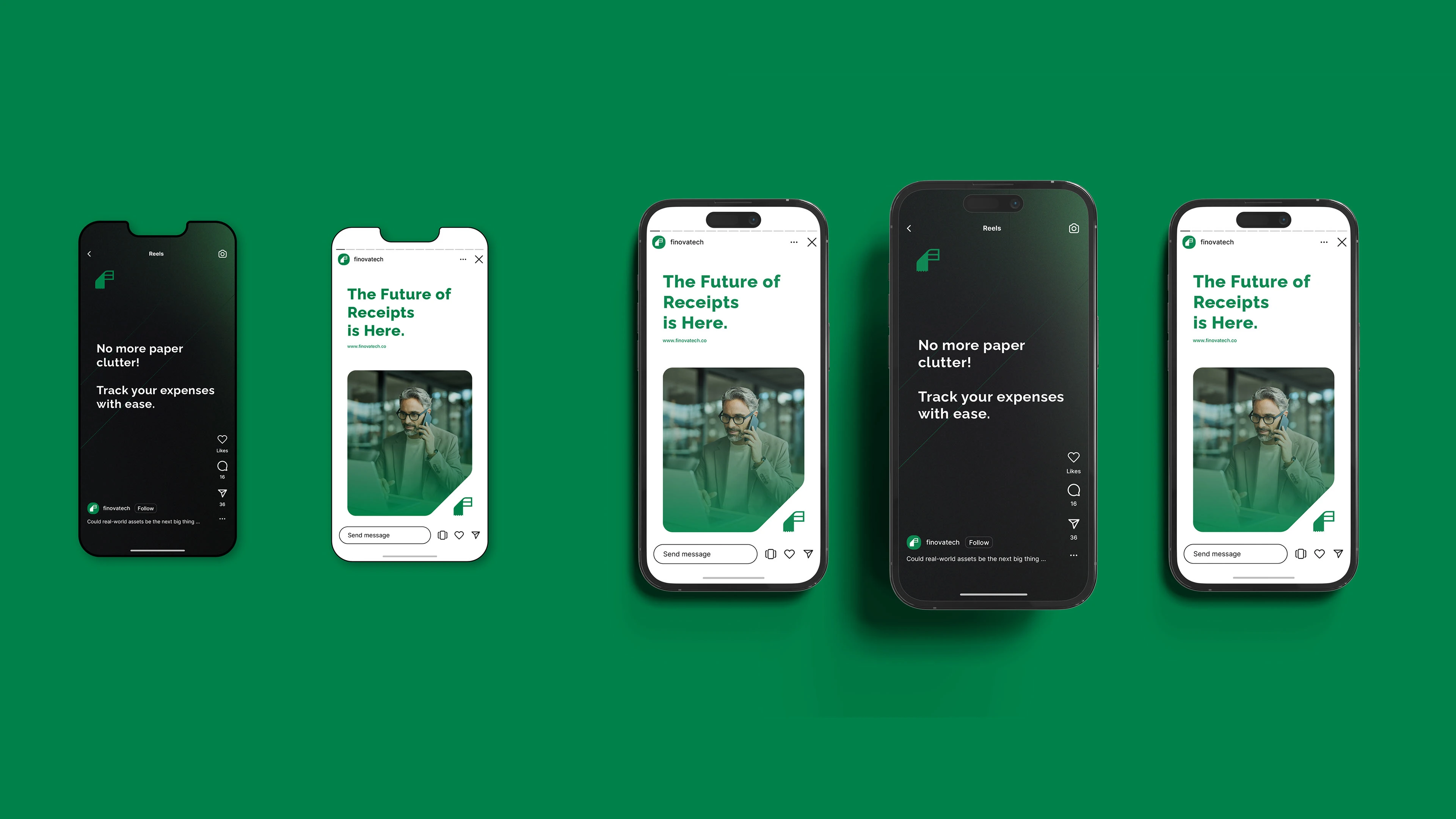 Finova Receipts offers a modern, paper-free solution for managing receipts: digital first, streamlined, user-friendly. My task was to create a visual identity that matched the innovation and simplicity of the product.
