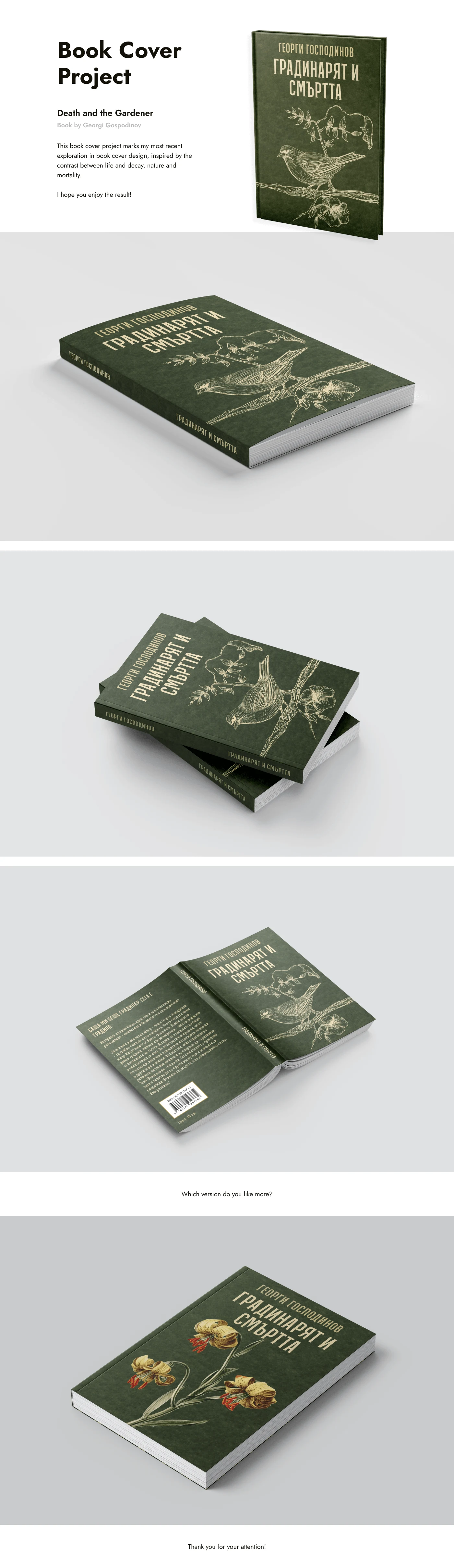 This book cover project is inspired by the contrast between life and decay, nature and mortality. I hope you enjoy the result!