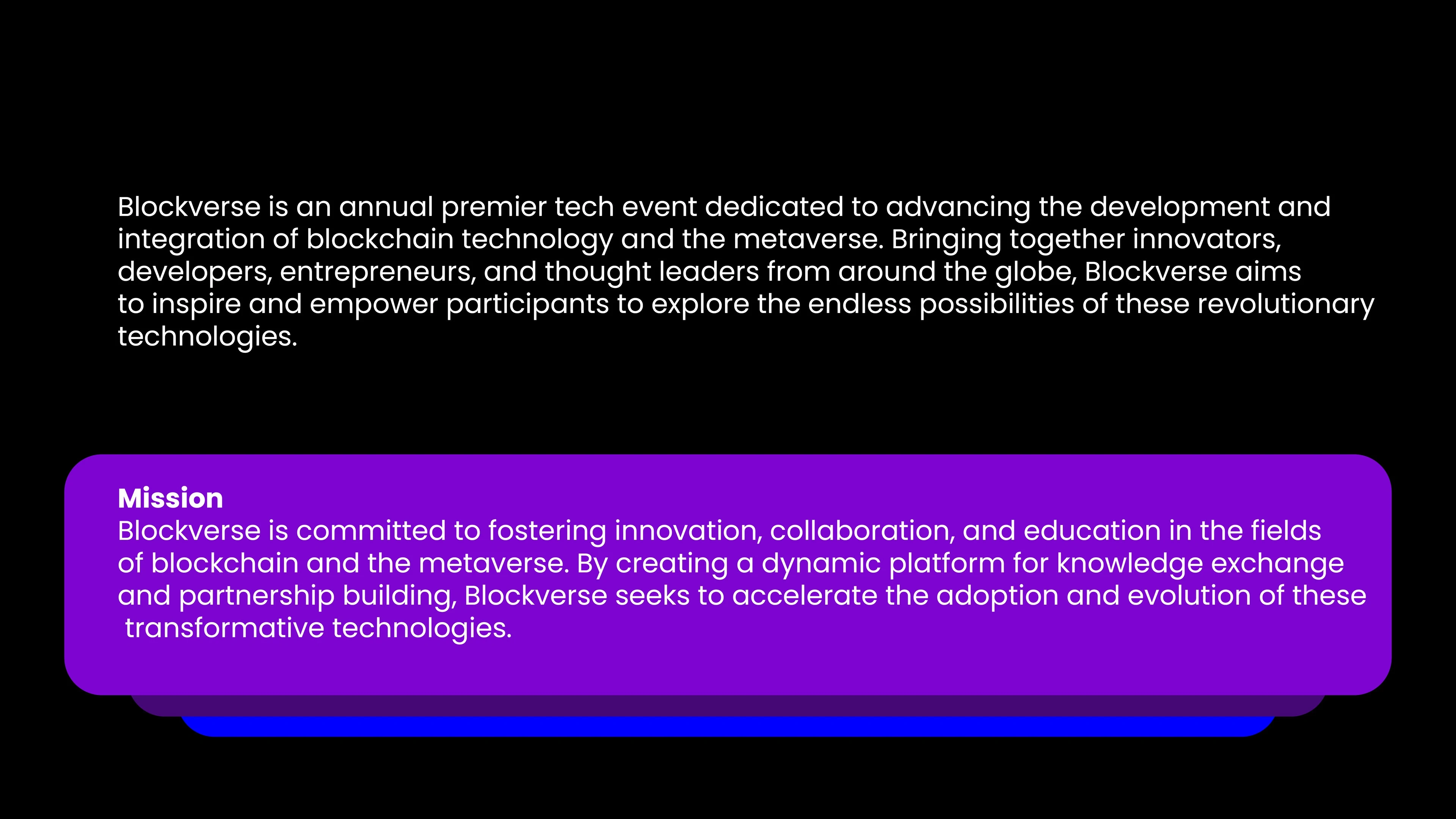 Blockverse is an annual premier tech event dedicated to advancing the development and integration of blockchain technology and the metaverse.