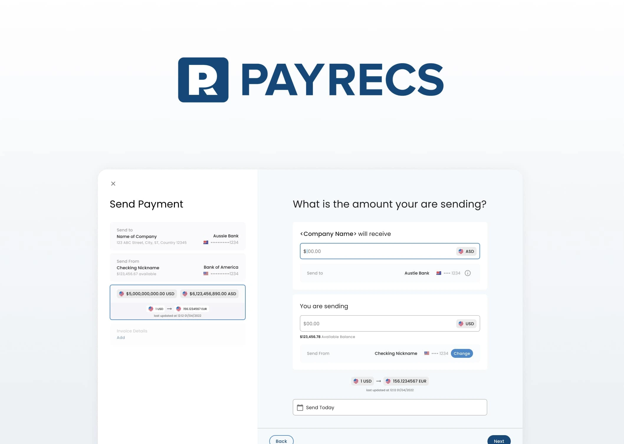 PayRecs is an international payment platform. I collaborate directly with the CEO and CTO to design new features to add to their product.
