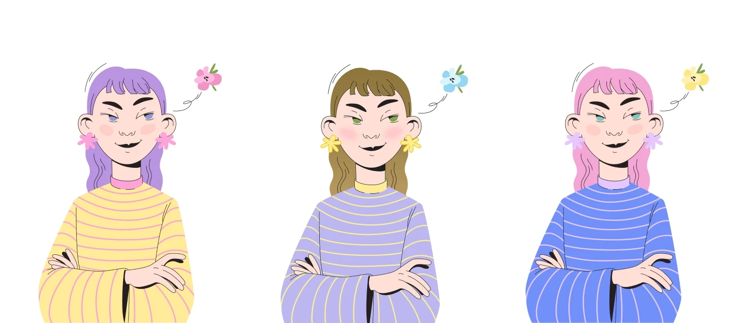 Vector illustrations of spring girls with floral patterns. Soft colors, feminine mood, and botanical motifs. See the full project on Behance.