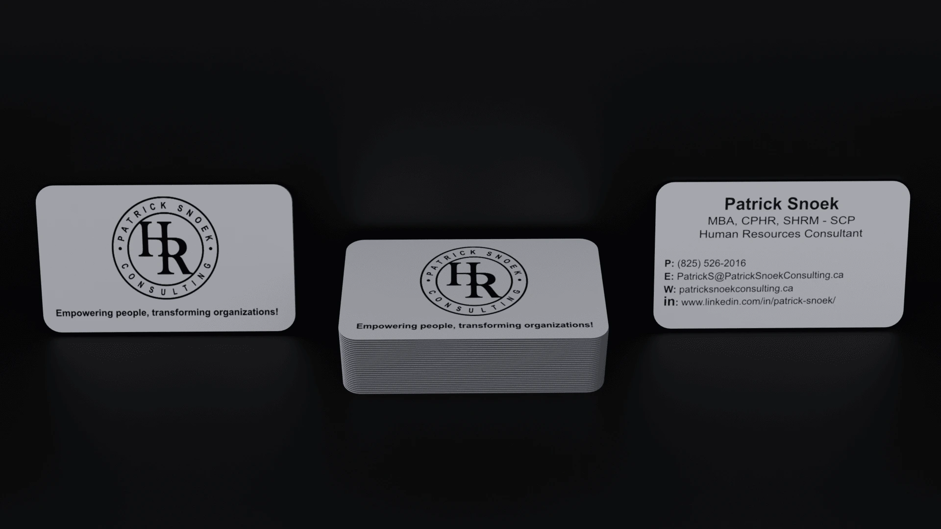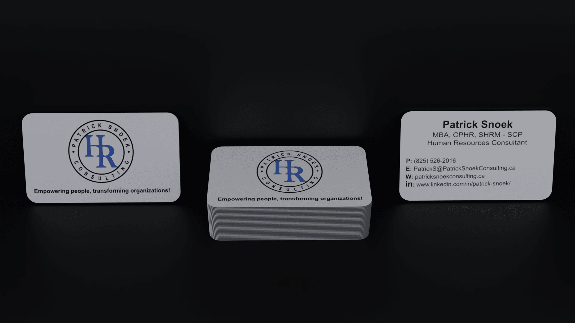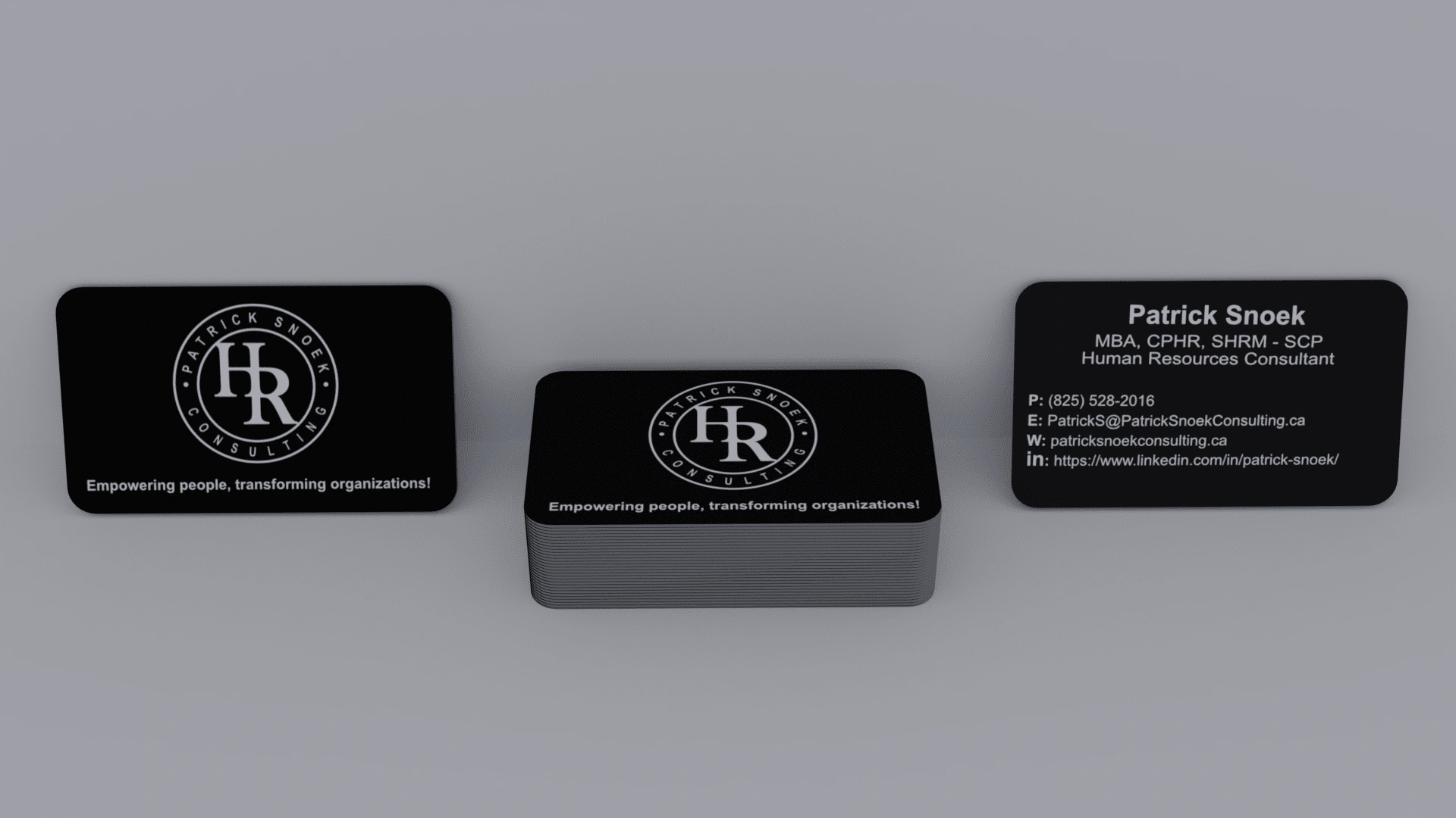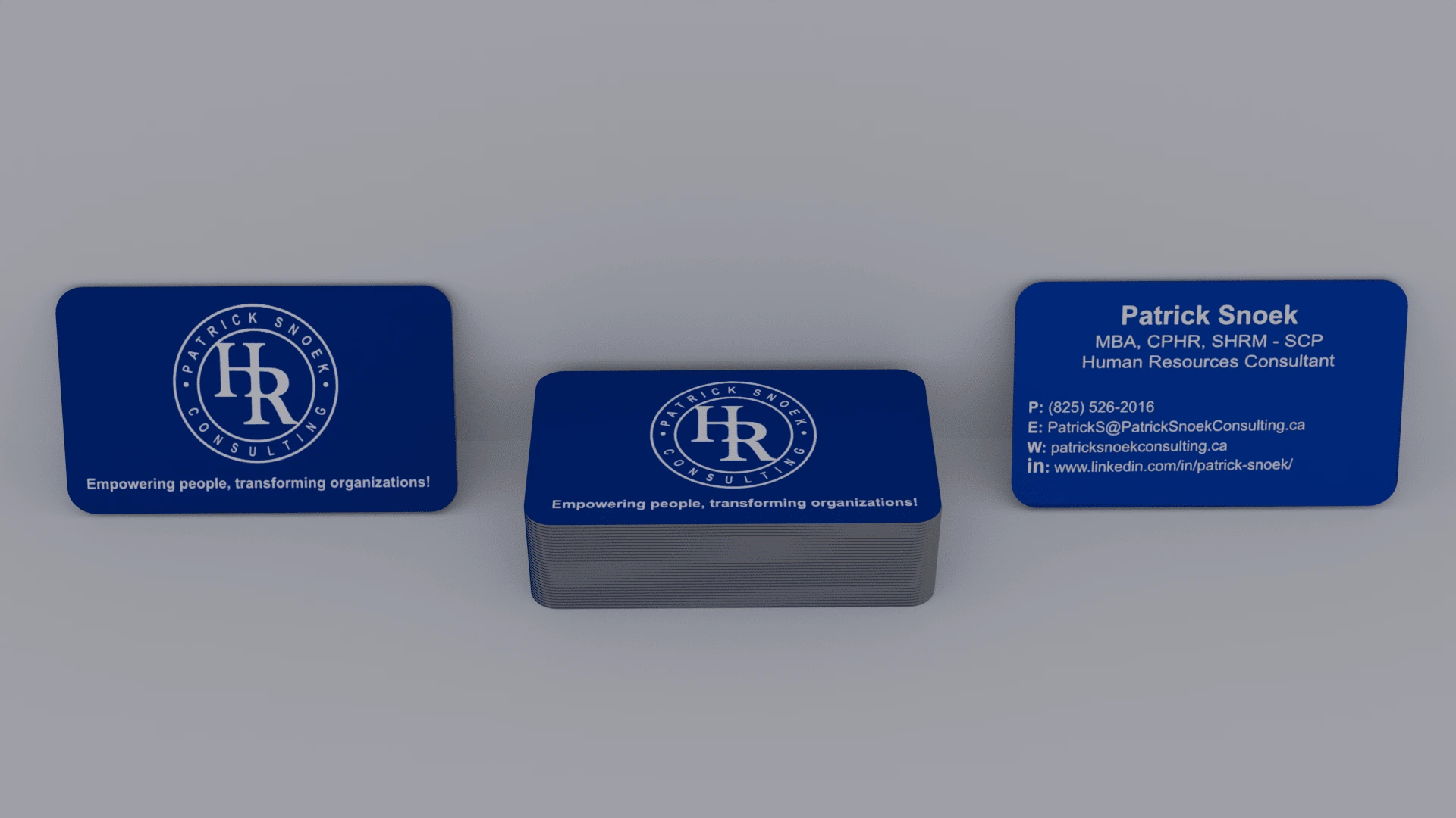 Business card designs for Patrick Snoek Consulting. Involved an updated logo, a company tag line, and legibility for Vista Print. (3d modelling not required)