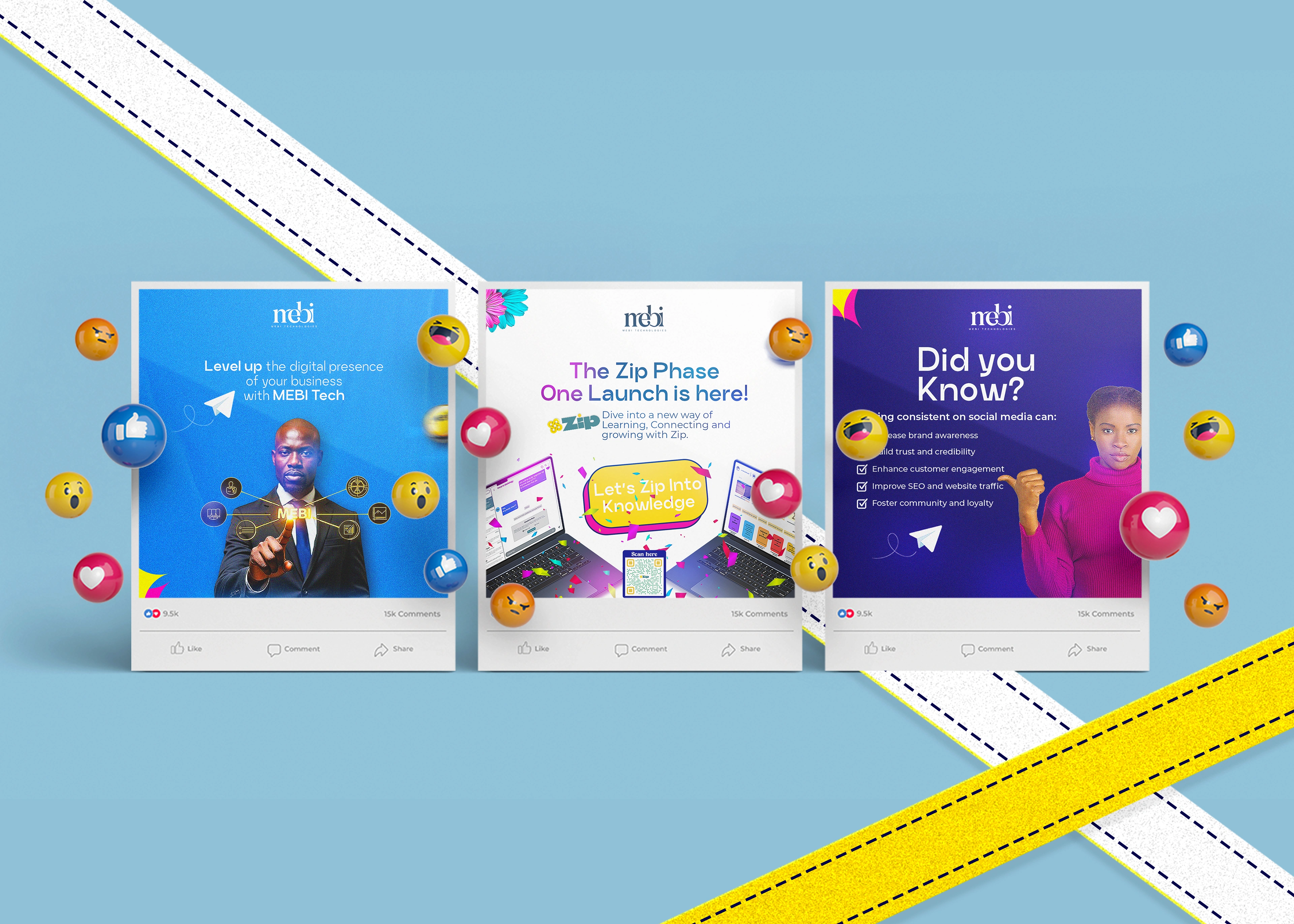 "Social Media Design for Mebi Technologies" — This project showcases a dynamic social media design series crafted for Mebi Technologies, a forward-thinking tec…