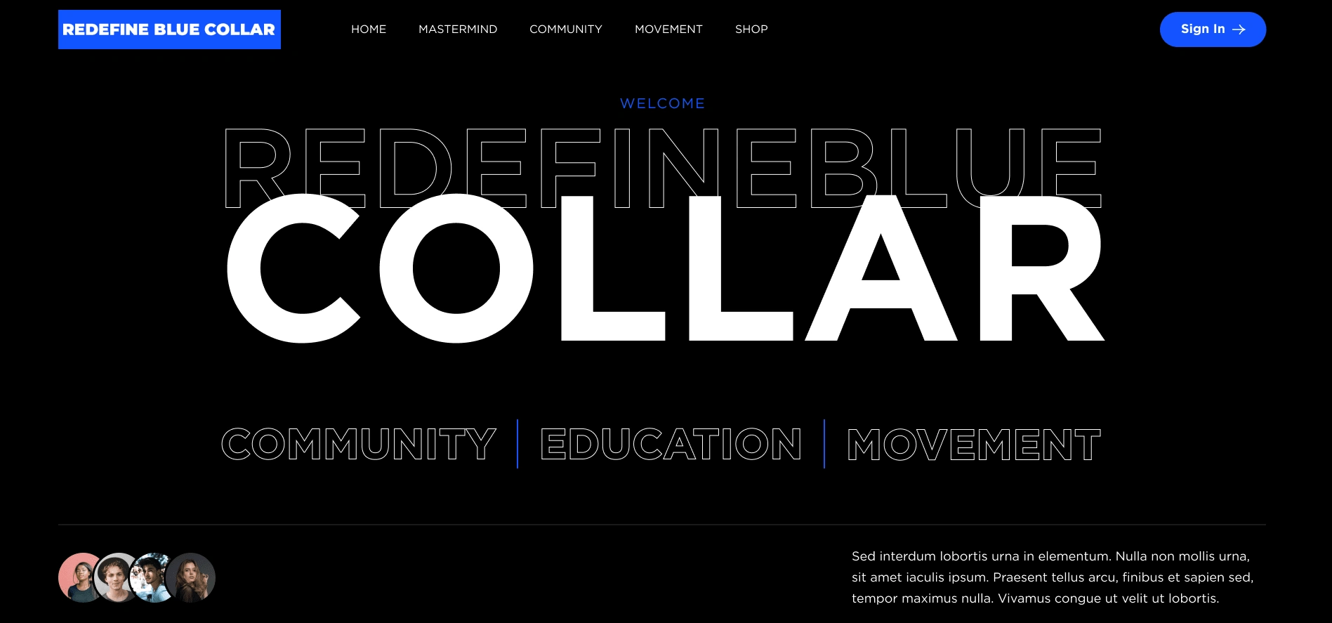 Designed a modern, user-friendly website for "Redefine Blue Collar" to showcase blue-collar careers as innovative and rewarding, boosting engagement and sign-up