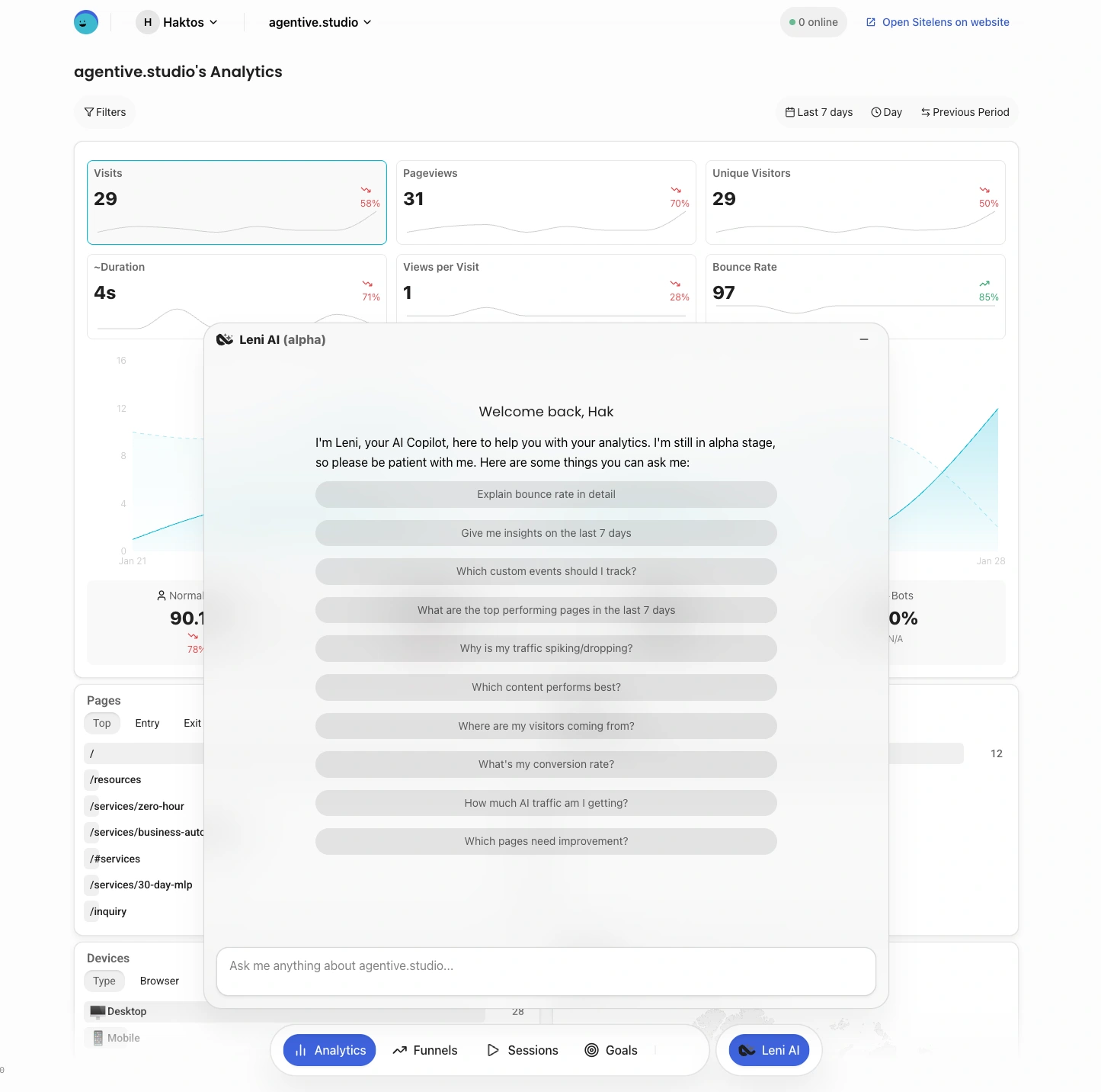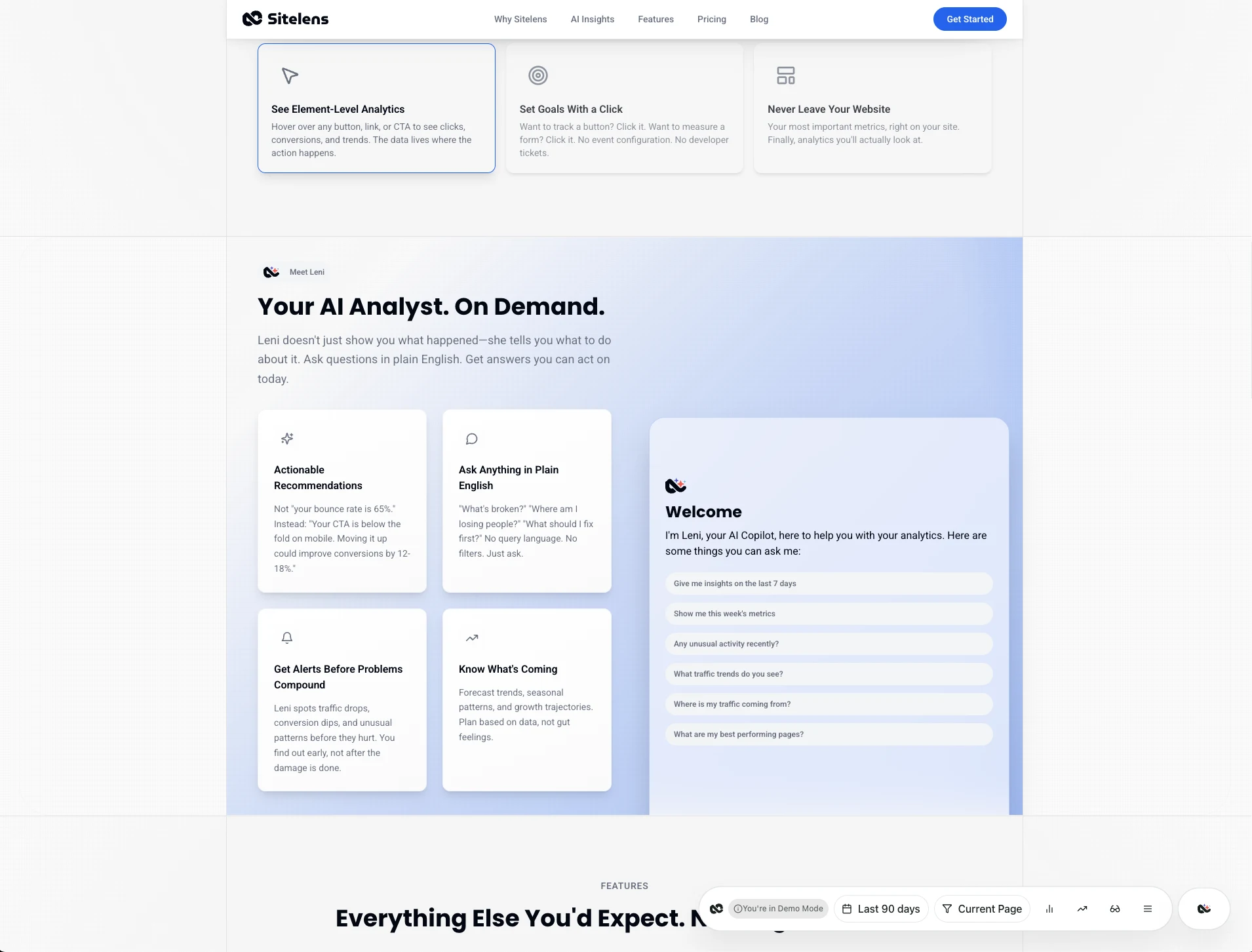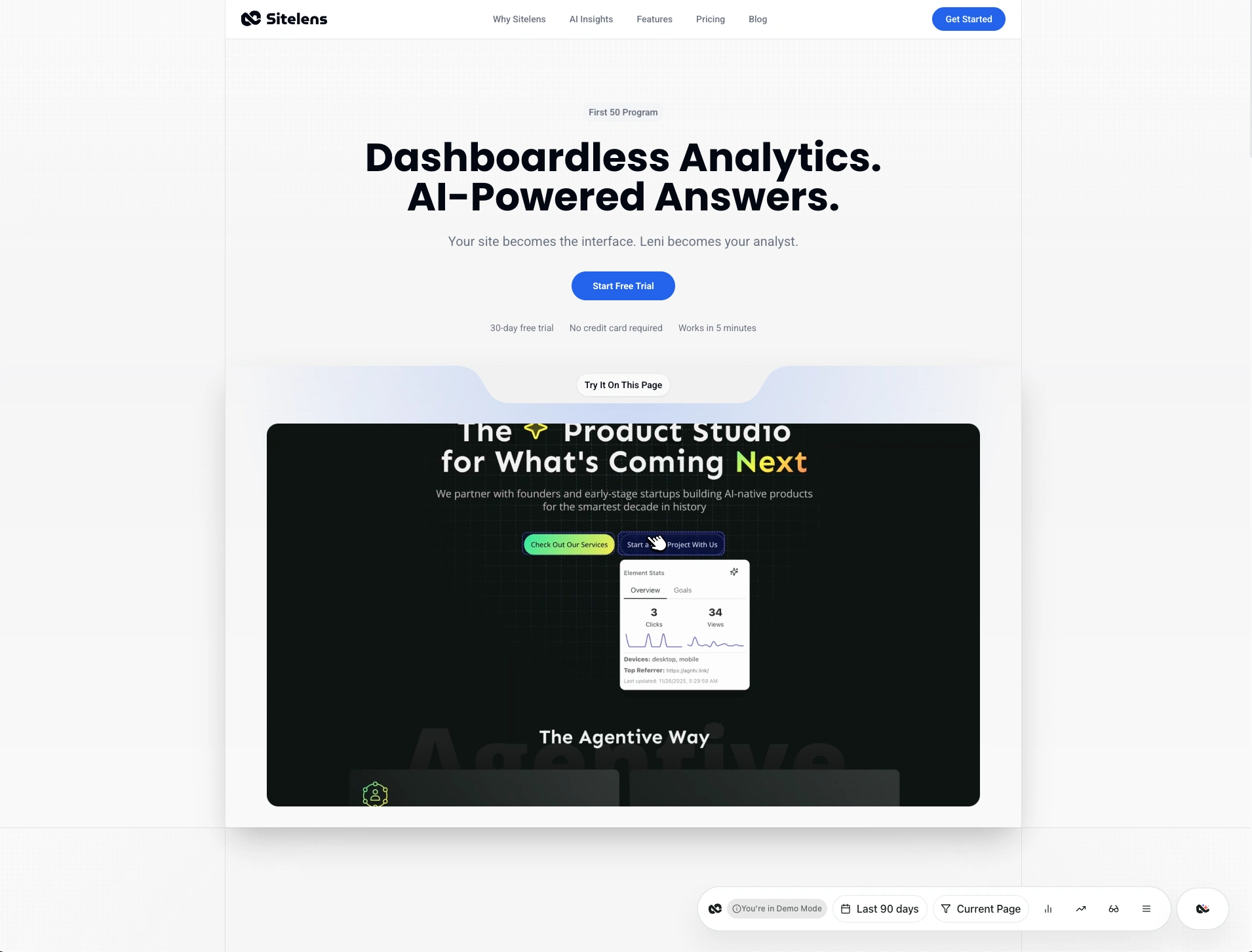 Instead of drowning users in dashboards and charts, SiteLens delivers actionable insights directly on their websites through "Leni", a personal AI Business Analyst.