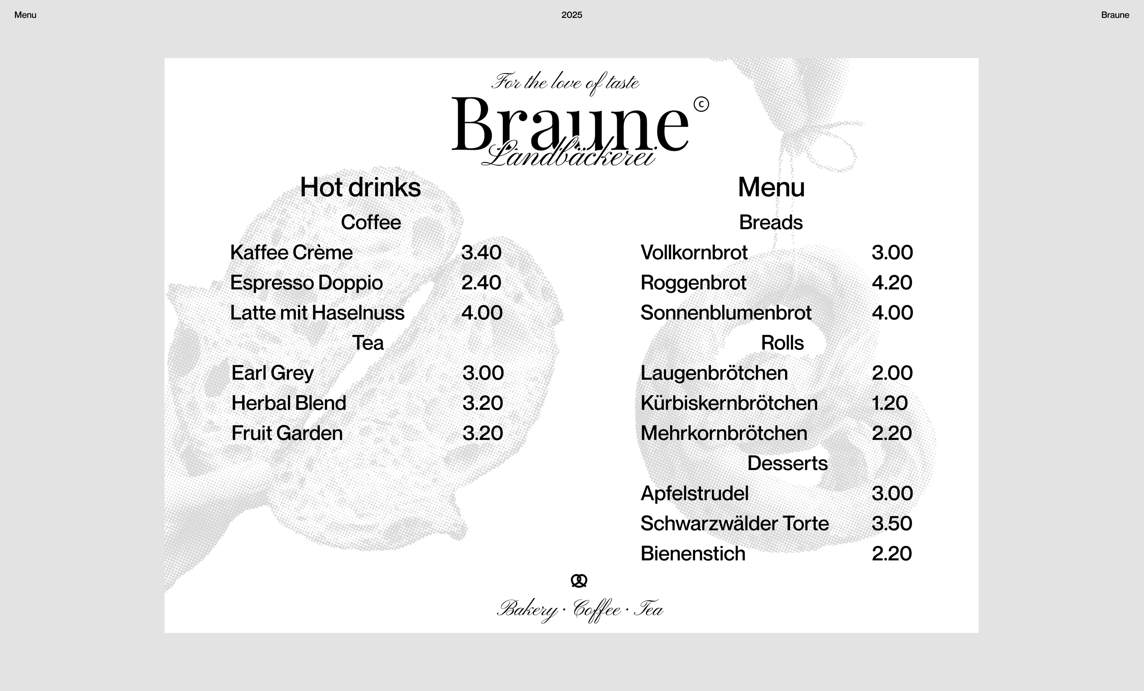 Everything was designed to feel intentional, from the monochrome palette to the minimal layout and tone of voice. It’s bakery branding with a twist - both playful and precise.