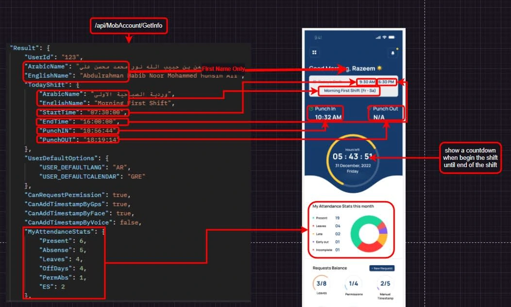 Check-In/Out Location-based Attendance QR Code Scanning Leave Management Multilingual UI (English & Arabic)