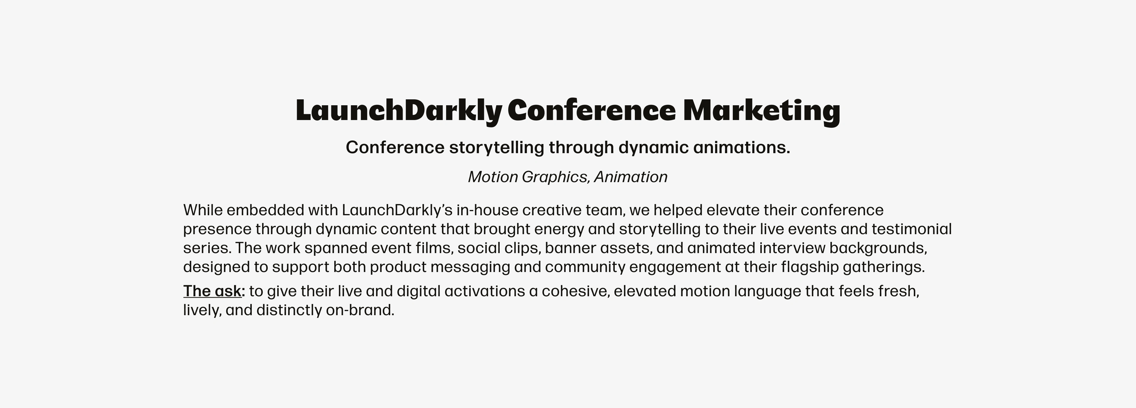 We animated event films, dynamic video interview backgrounds, social media clips, and banner ads that highlighted product features and customer successes.