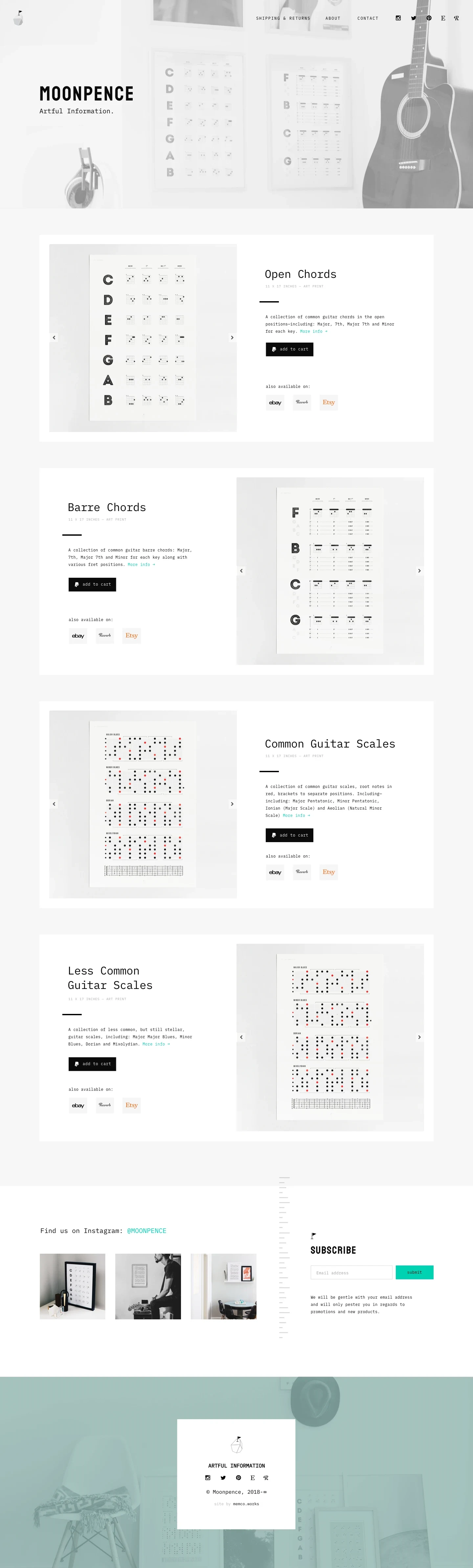 yet organized and architectural approach to the way Moonpence displays their information; and with the goal of wanting to expand into many markets, not just music. We shot for the stars and landed on a name that embodies exploration and whimsey, and a logo mark that matches the fun and playful nature of the founders.