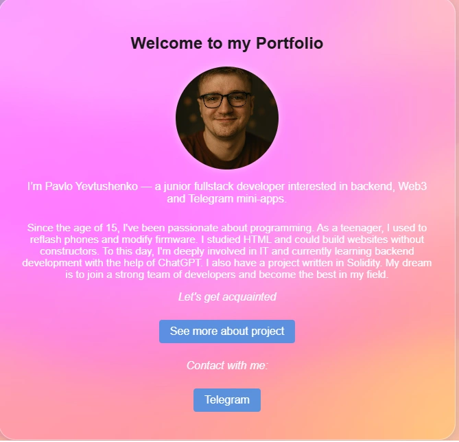 Built a modern portfolio site hosted on GitHub Pages with functional login system (front-end only)