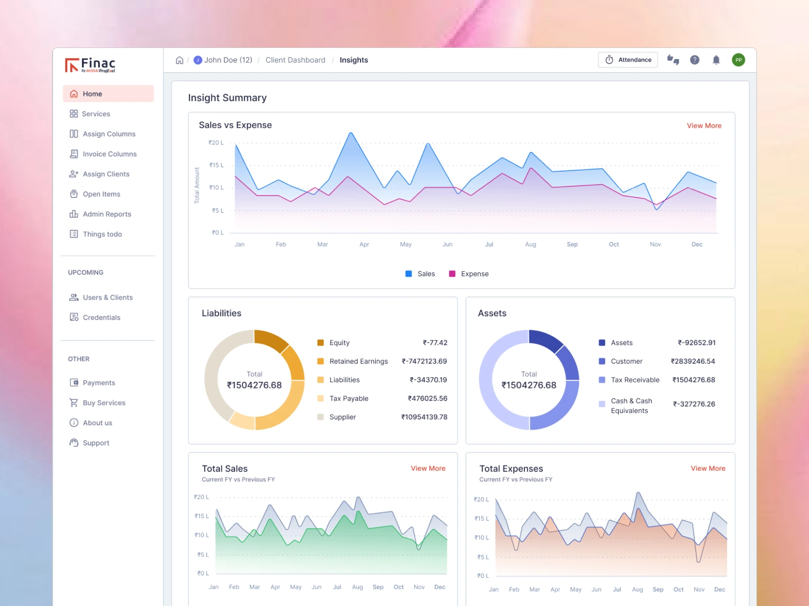 Designed a financial insights dashboard for Finac, aimed at giving users a clear, real-time understanding of their business health. The goal was to transform complex financial data into an intuitive, easy-to-read interface that supports faster decision-making.