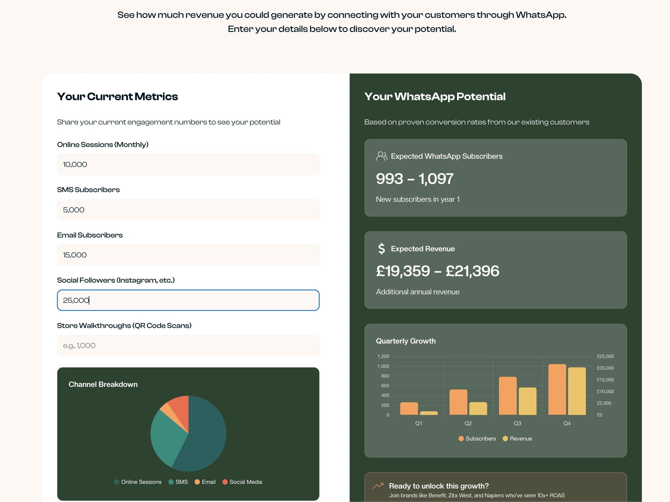 Built a calculator using JavaScript and Chart.js that calculates how much revenue a client could generate by connecting with their customers through Merx.
