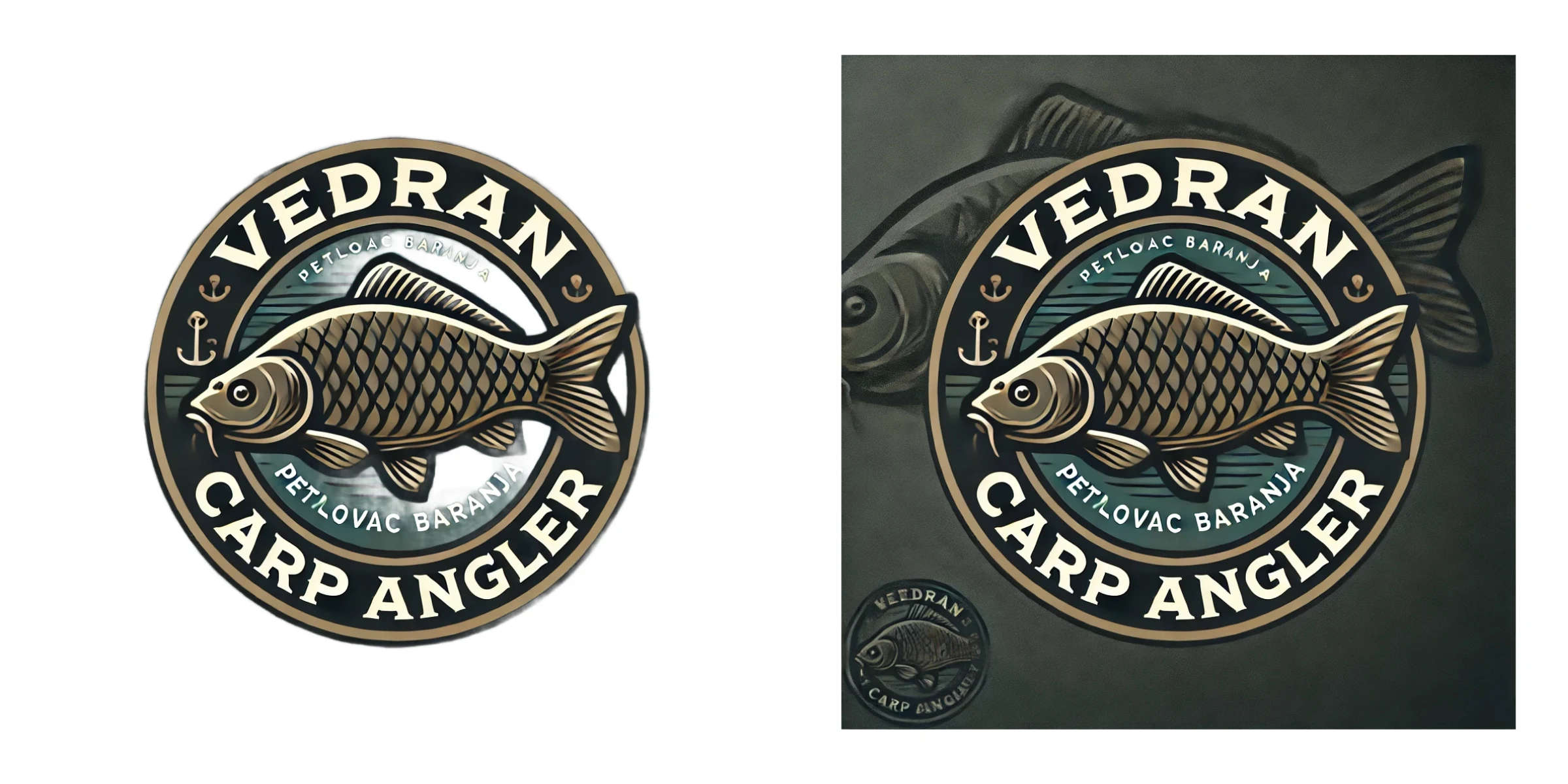 A clean carp fishing logo with a stylized carp and bold typography. AI supported the concept, while final design ensured clarity and a premium outdoor feel.