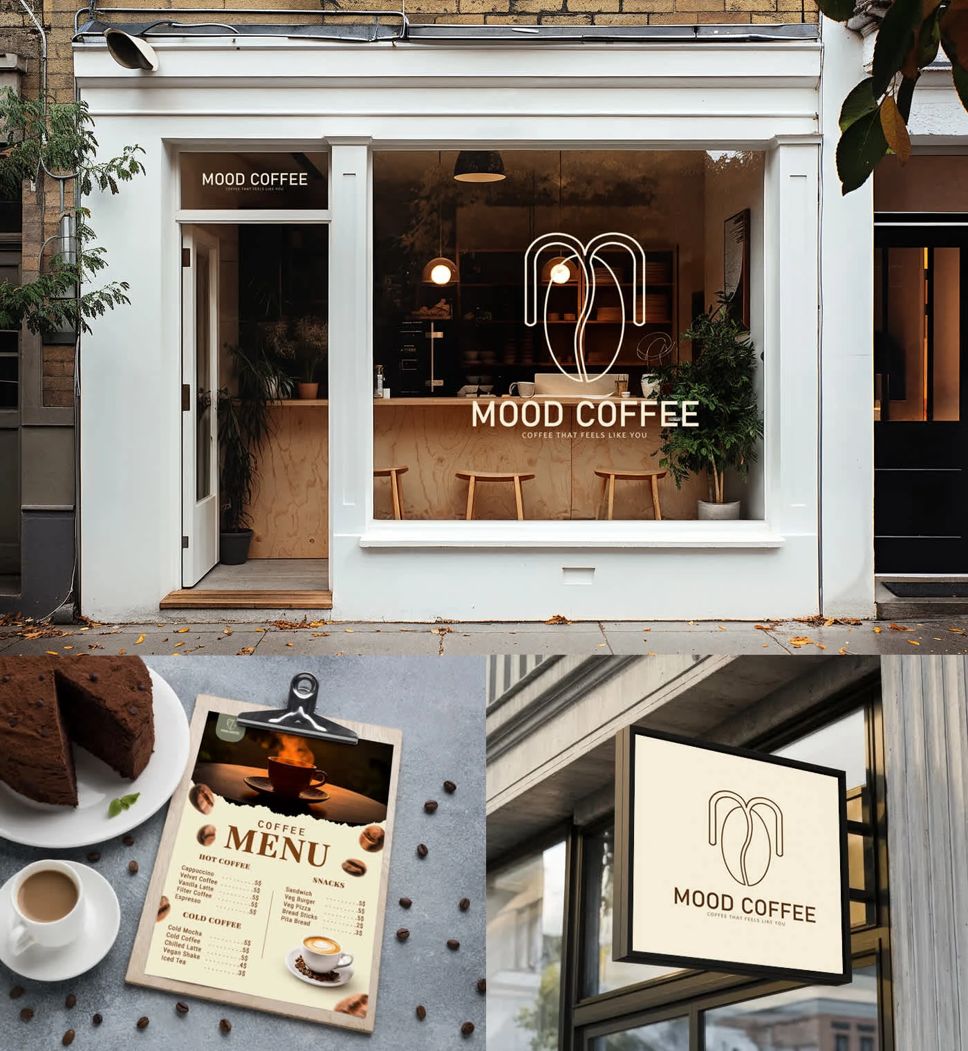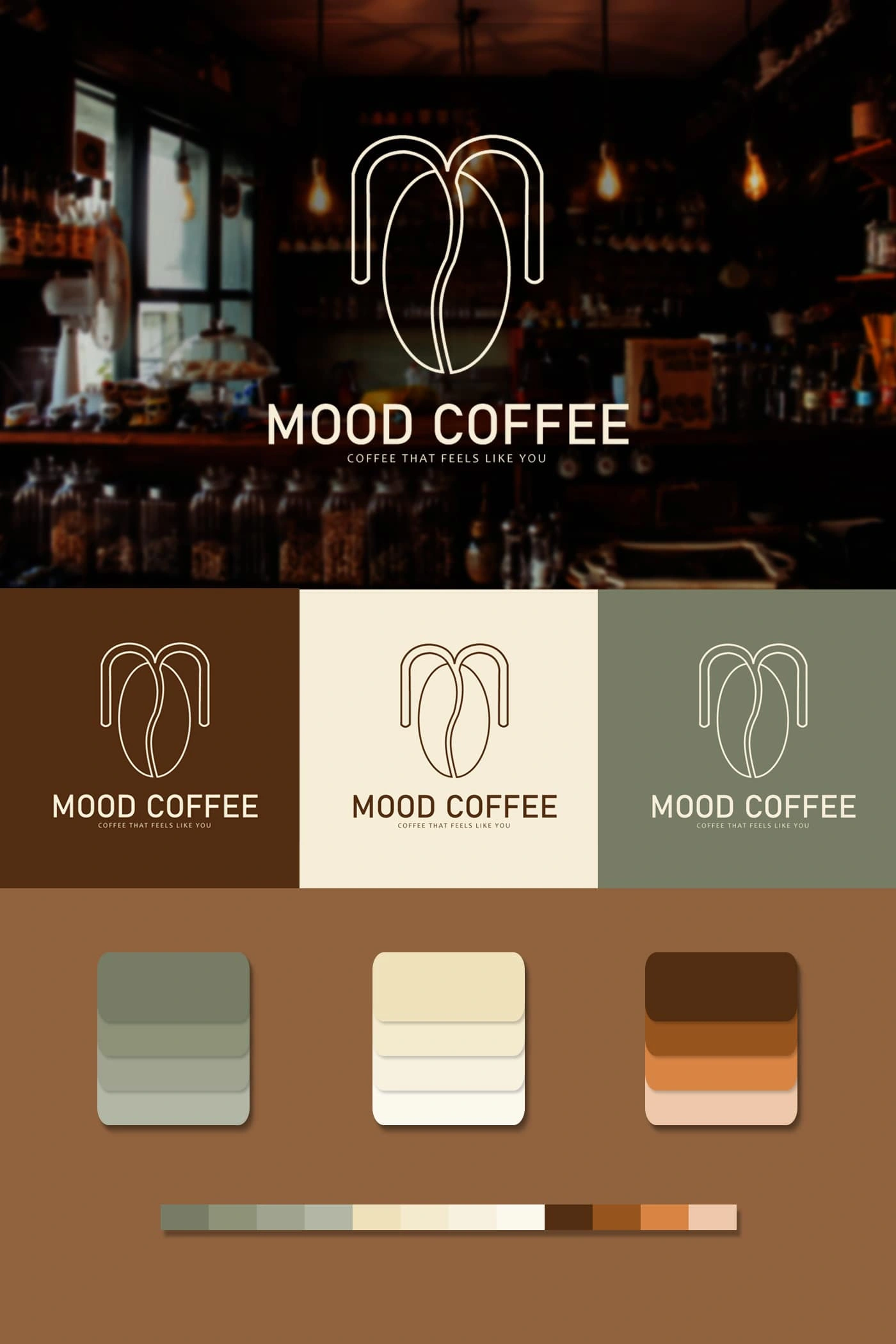 Designed branding for MOOD Coffee, a coffee shop for young people who love quietness and want to find a space to work, read or relax.