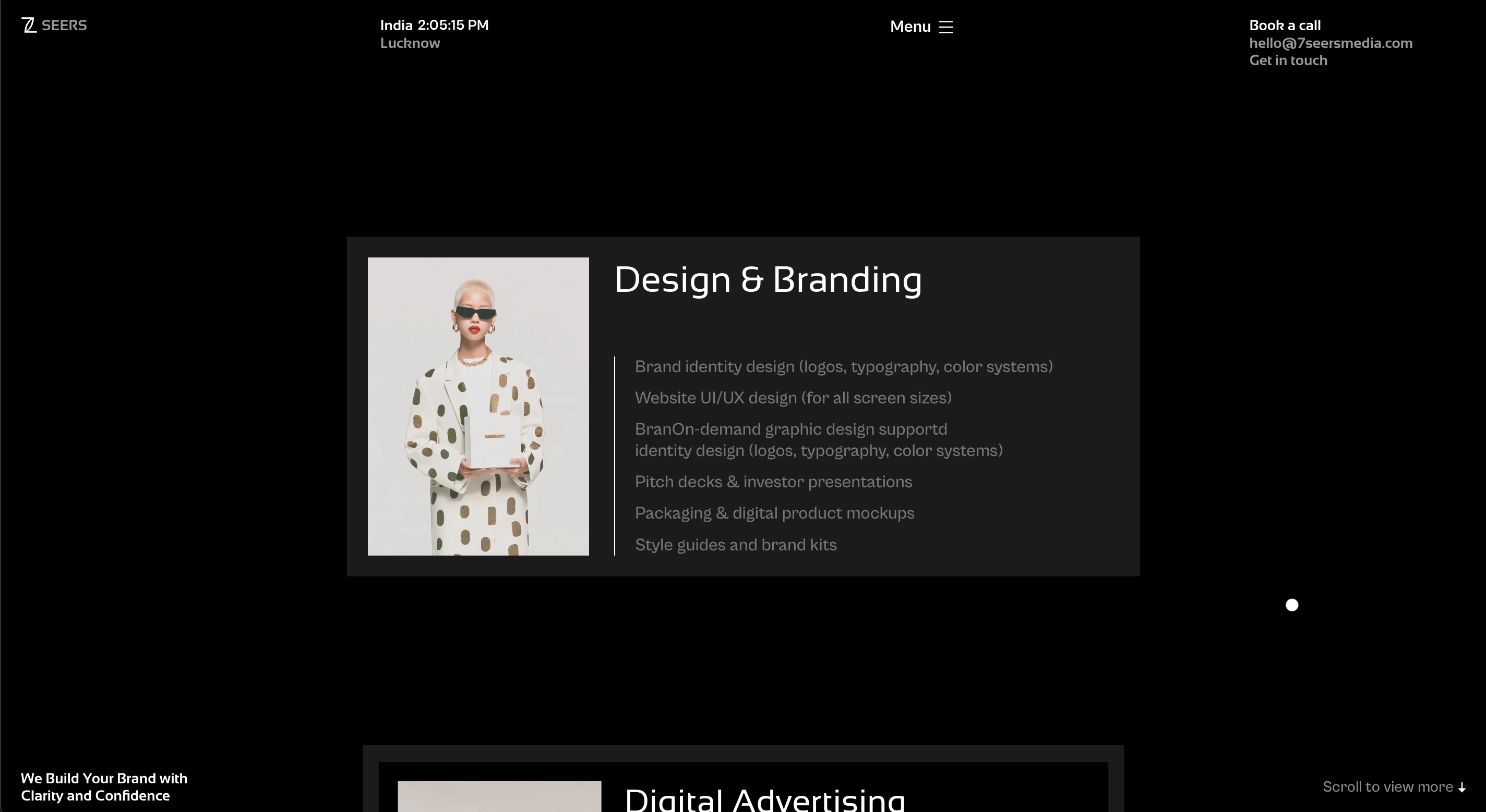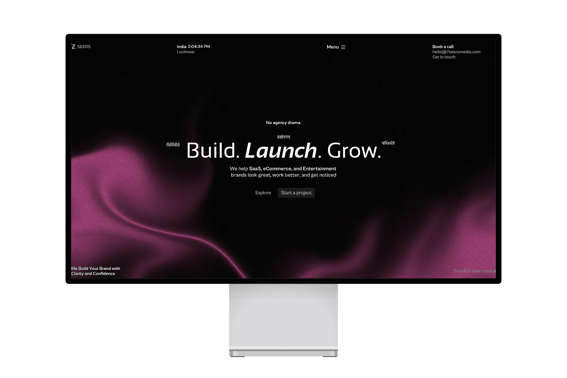 I redesigned the 7 Seers Studio website from a standard agency layout into a bold, culturally rooted digital identity. The new site blends modern minimalism with Sanskrit elements to create a brand presence that feels confident, elevated, and timeless.