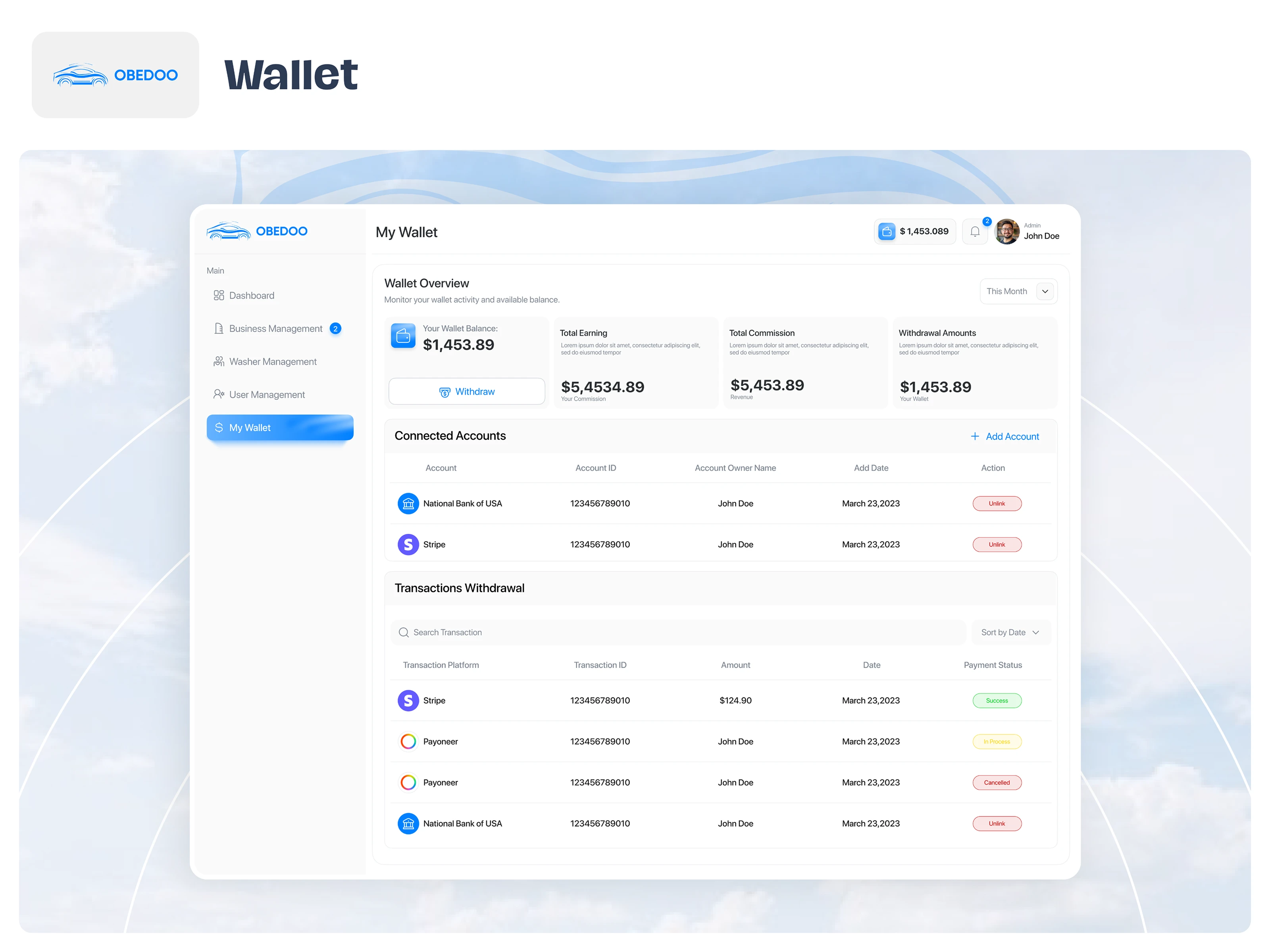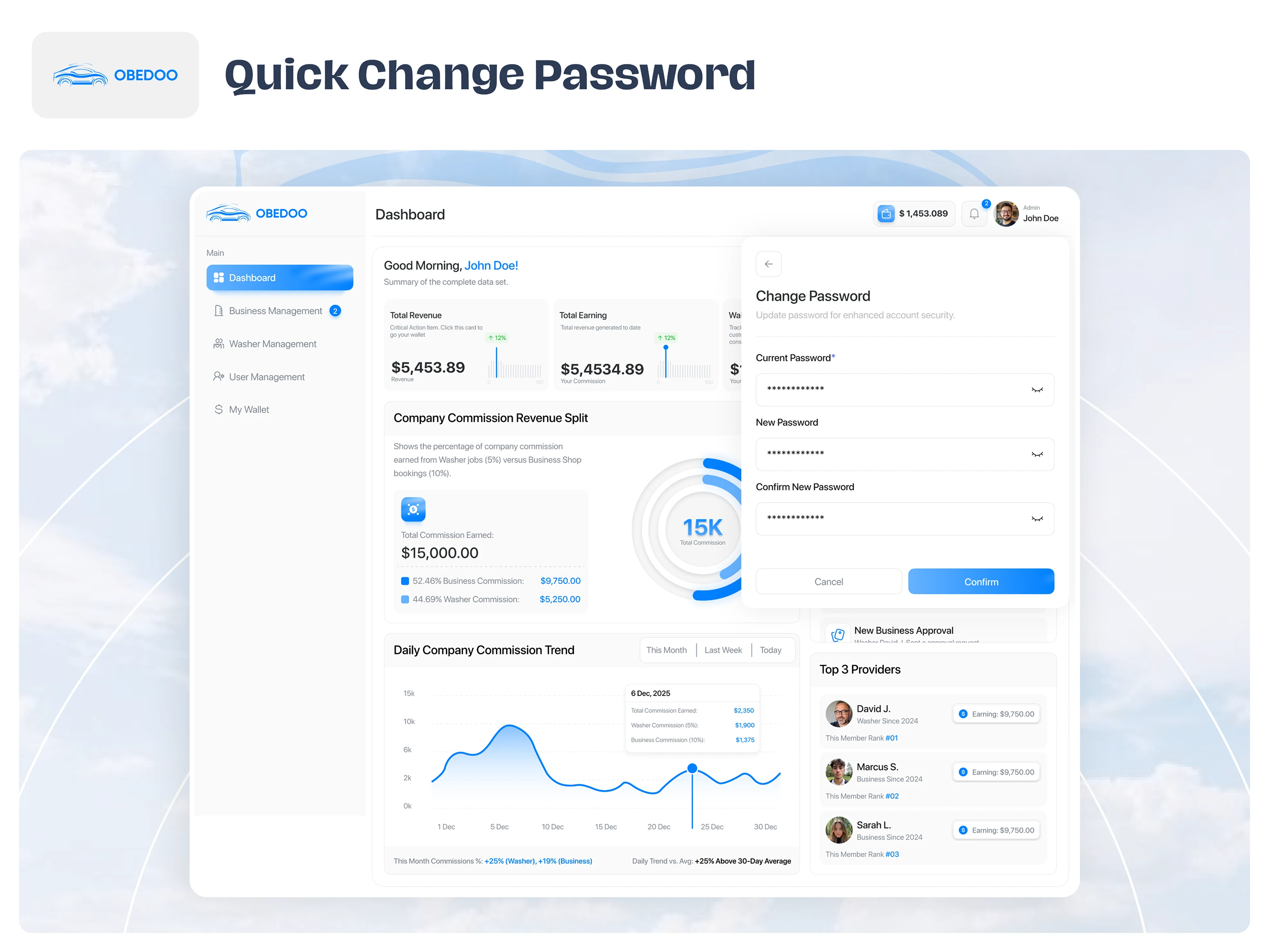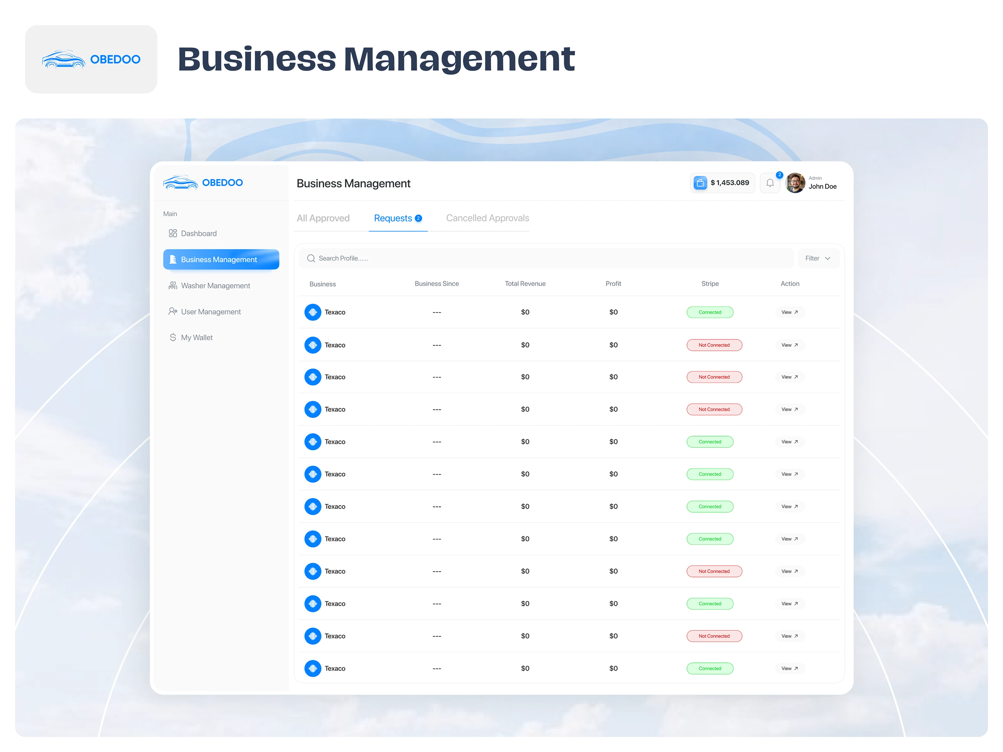 The View About Business screen for Obedoo provides a detailed modal interface for reviewing individual partner profiles and operational data. I designed this user interface to consolidate personal, business, and contact information into a single, high-clarity view for administrative verification.