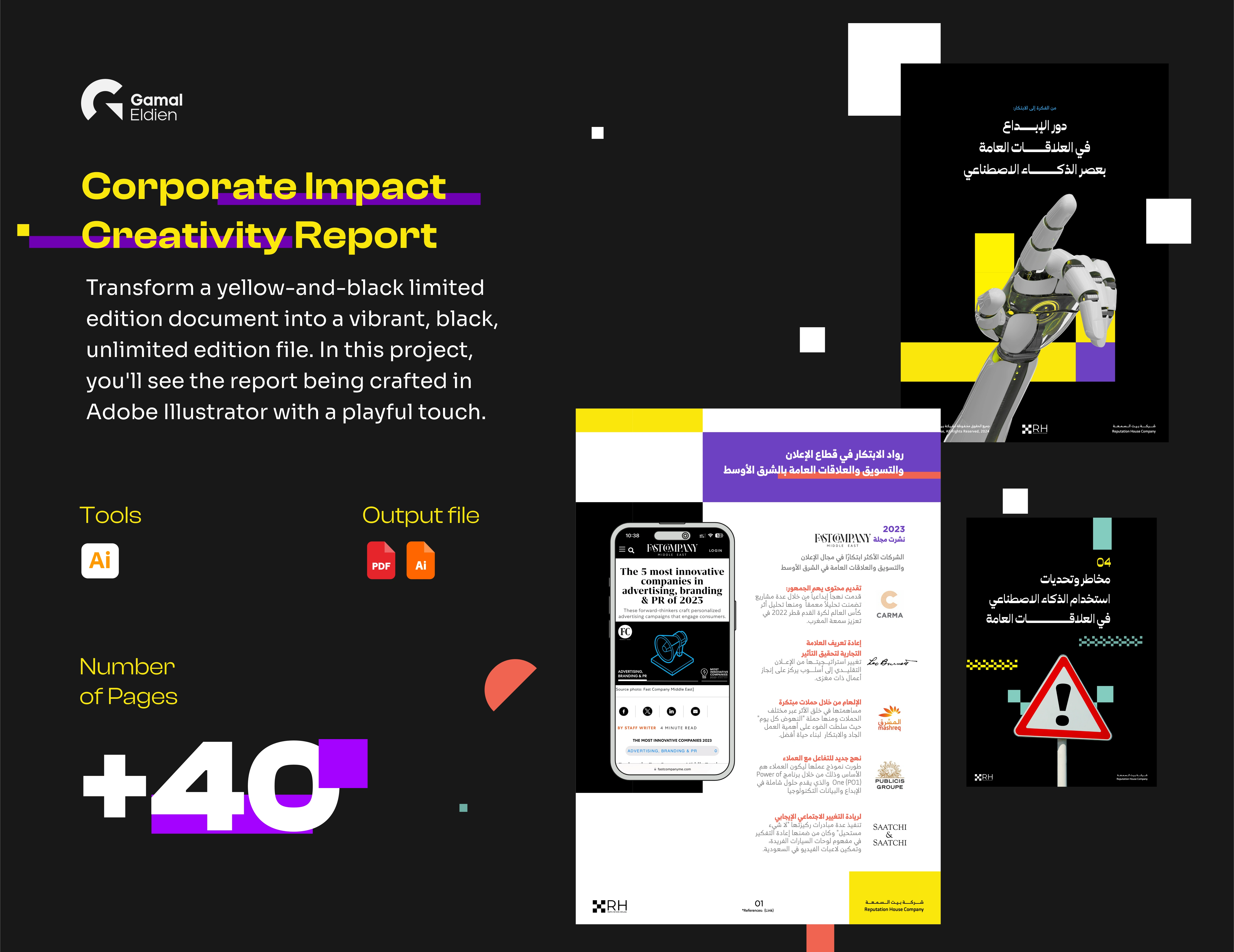 a yellow-and-black limited edition document into a vibrant, black, unlimited edition file. Here, you'll see the report being crafted with a playful touch.