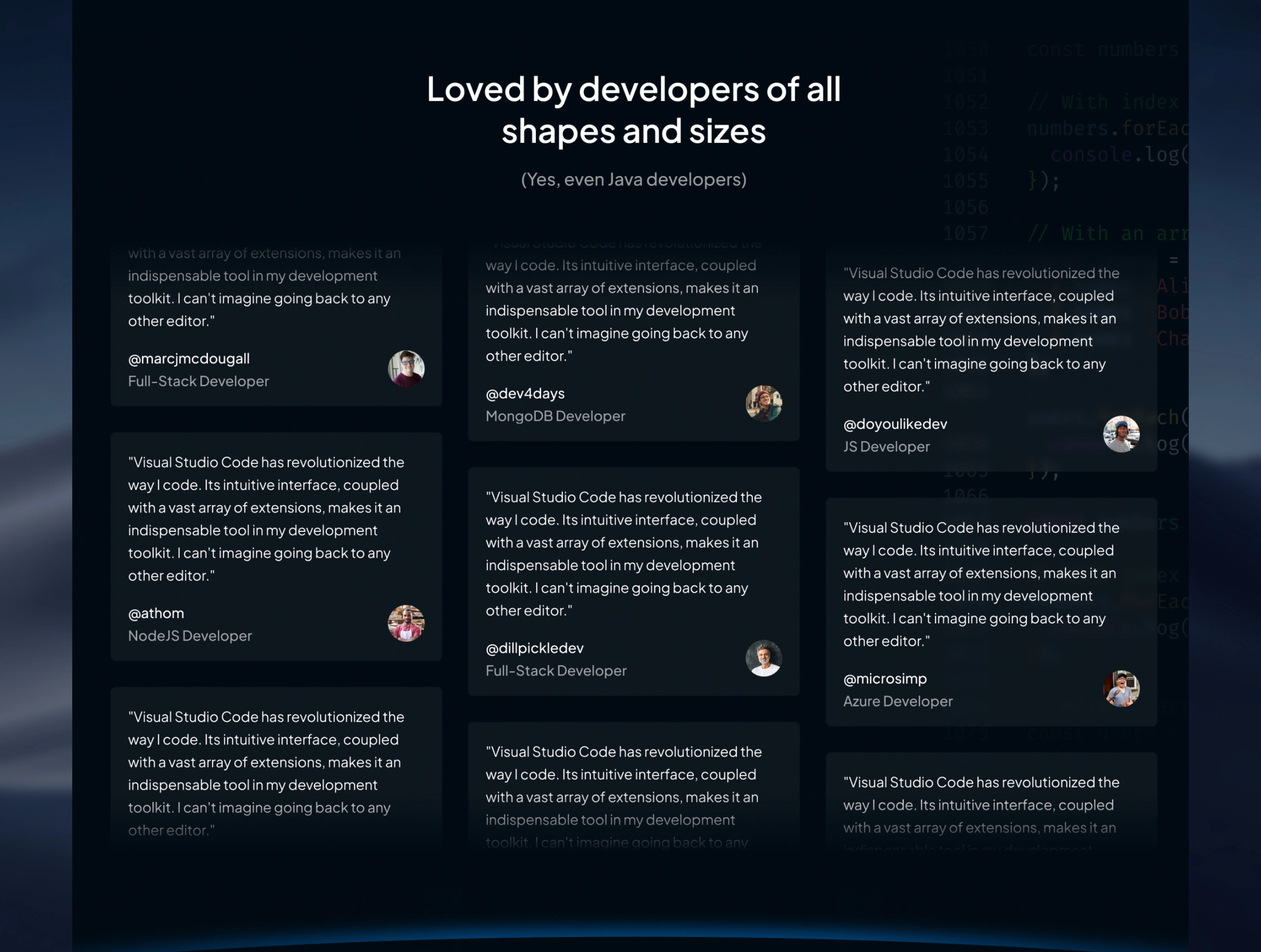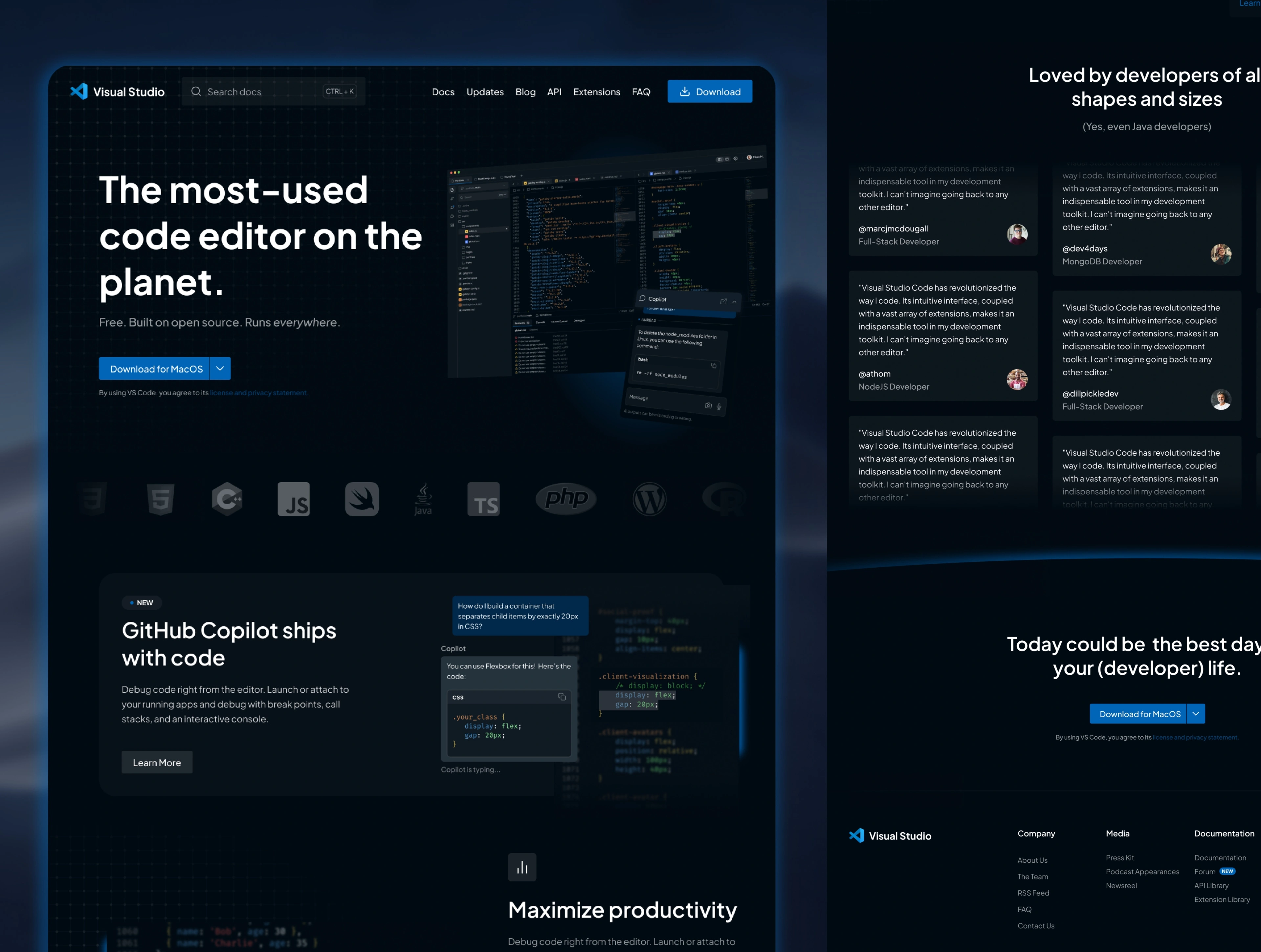 The VSCode product site was in shocking disrepair. So... I took it upon myself to fix it for Microsoft. You're welcome, Bill Gates!