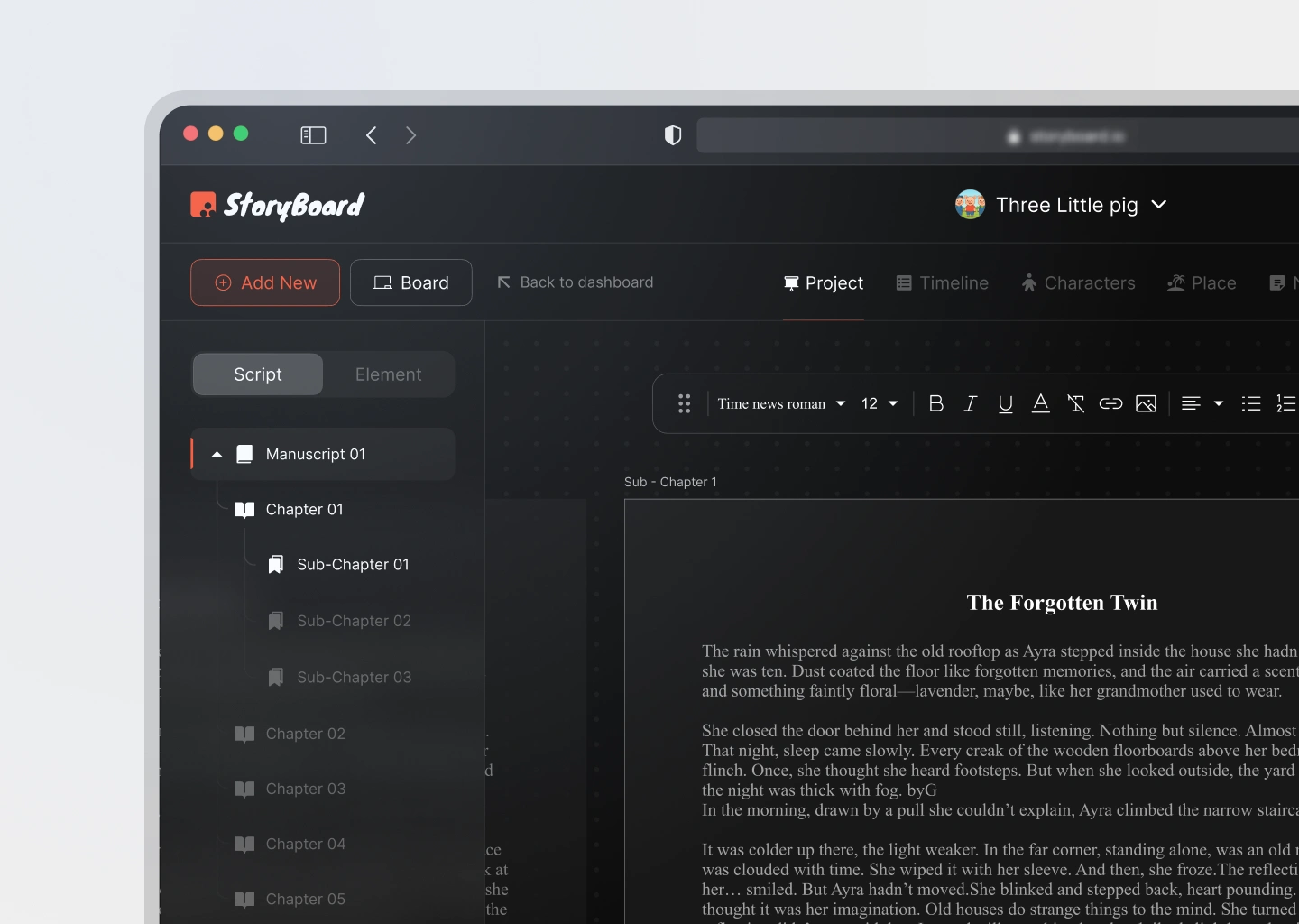 Whether you're writing a screenplay, novel, or short film, Storyboard gives you the tools to plan your story like a pro.