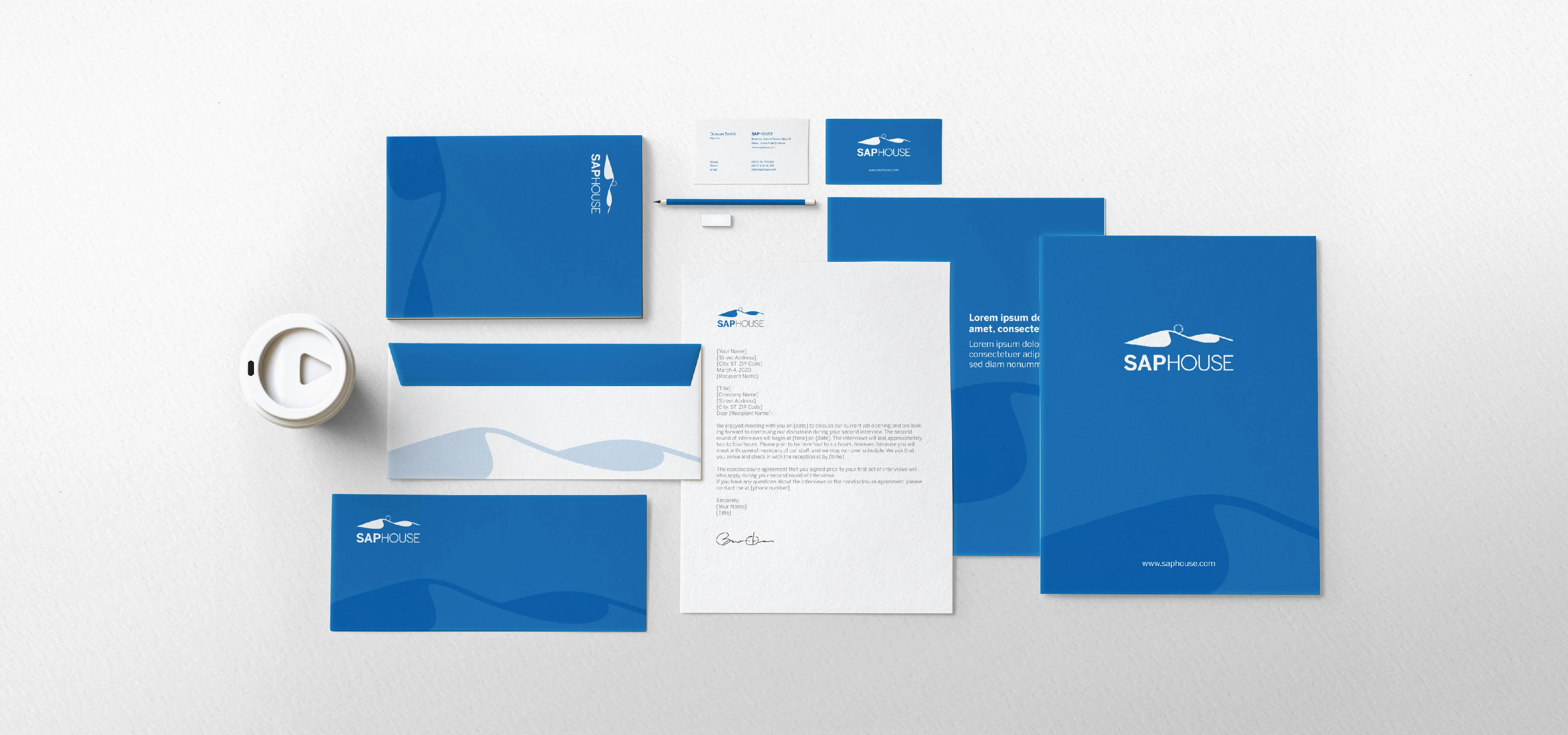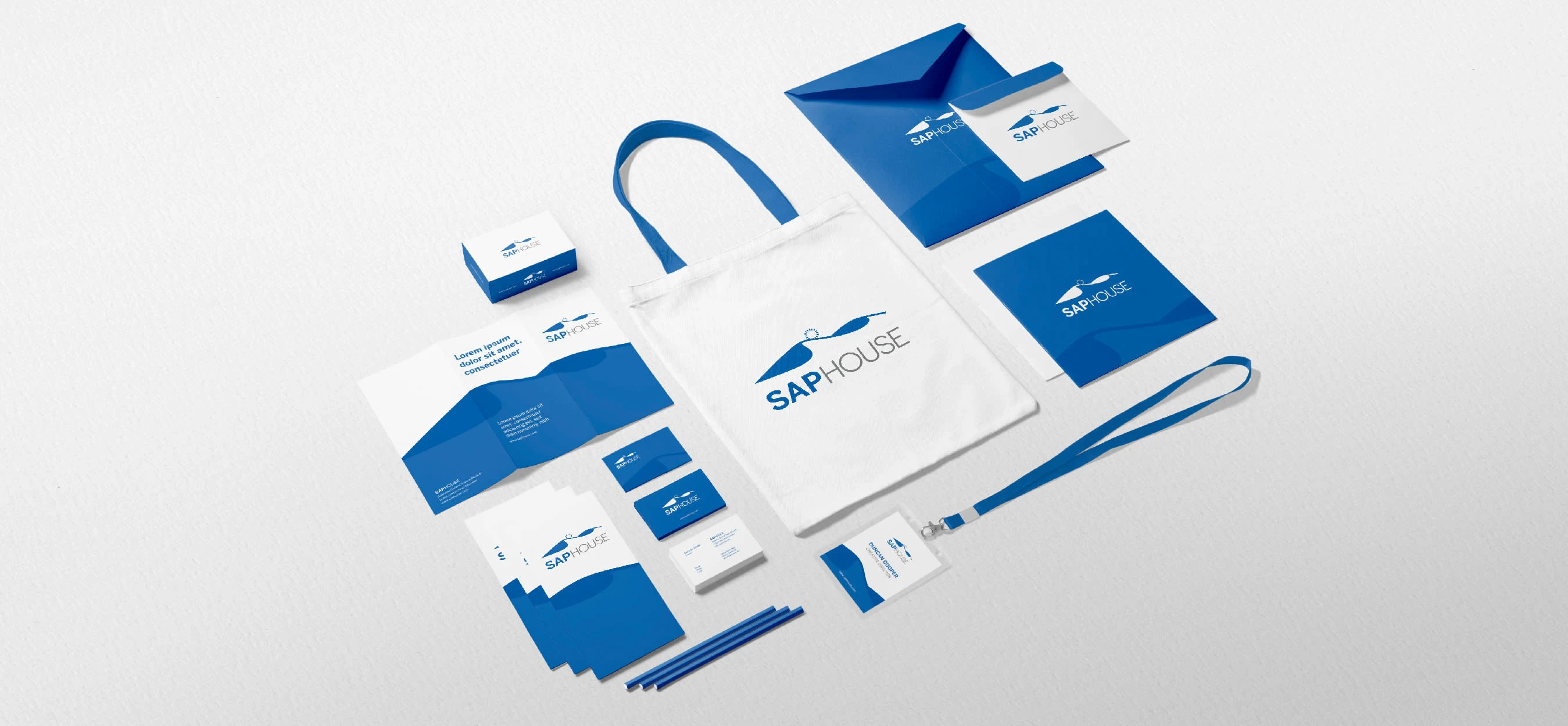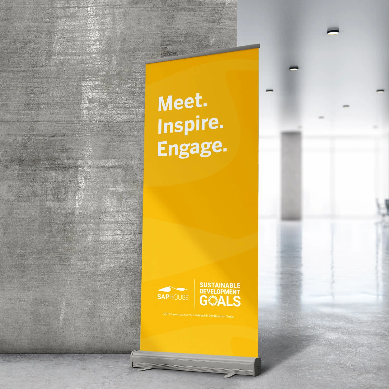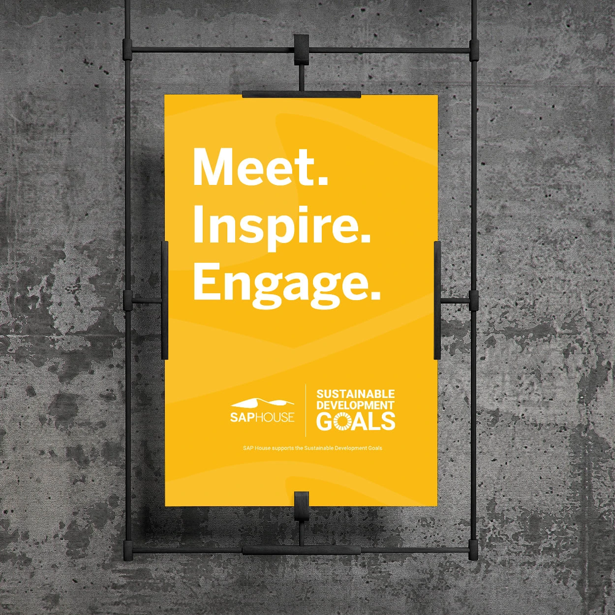 SAP House's branding and its support for the Sustainable Development Goals (SDGs). The visuals include stationery, business cards and signages.