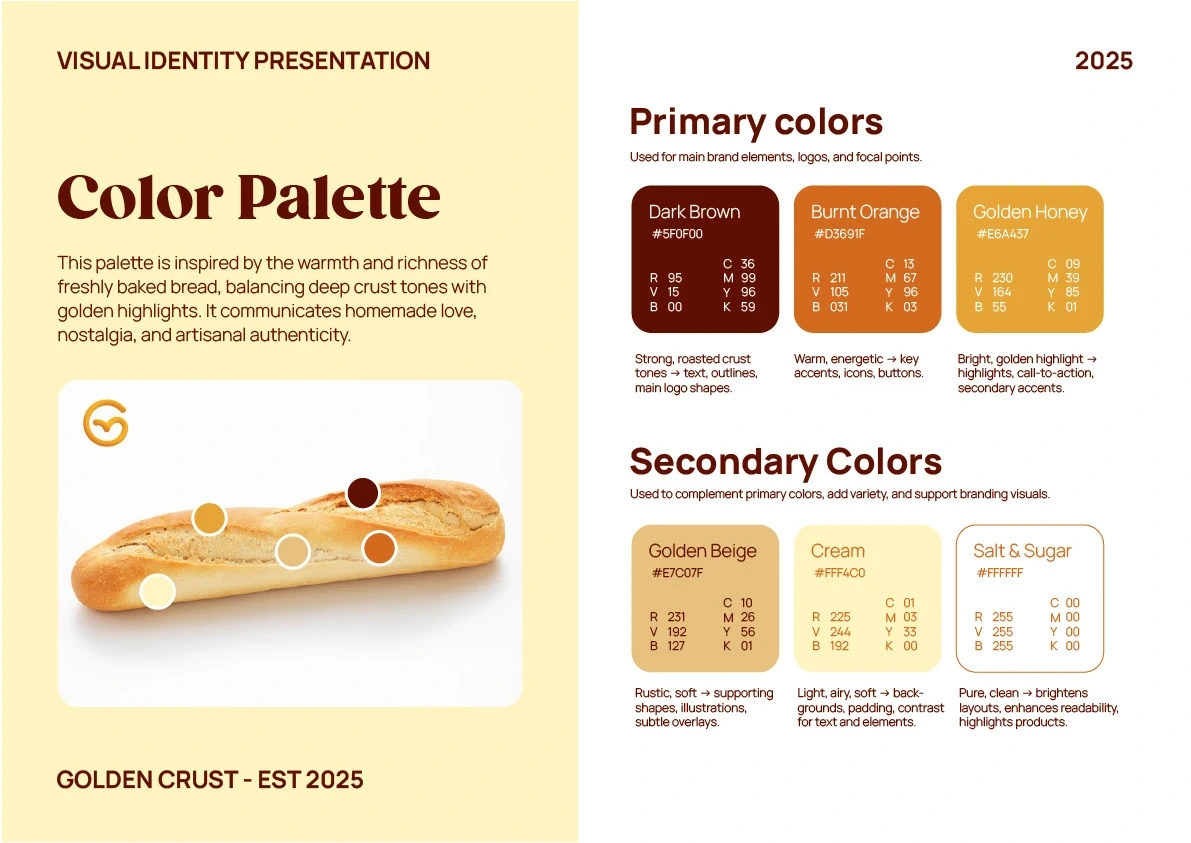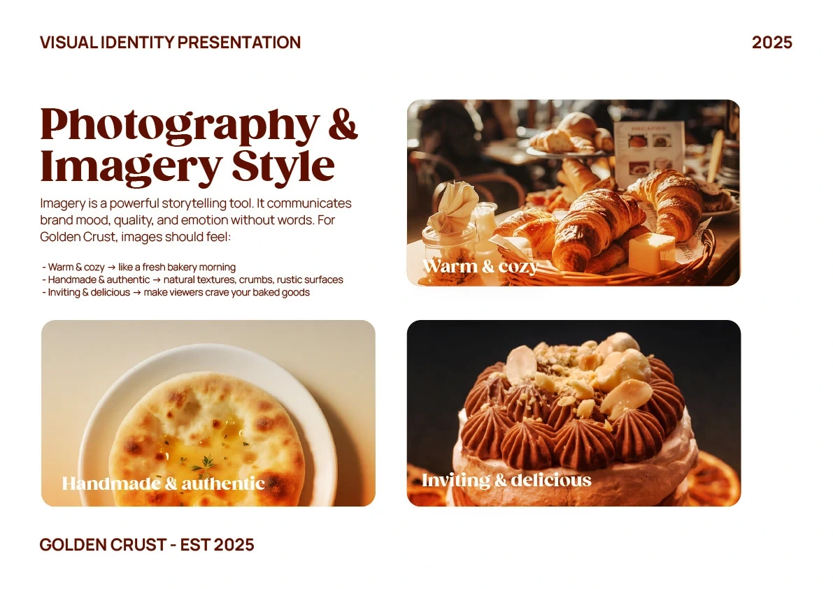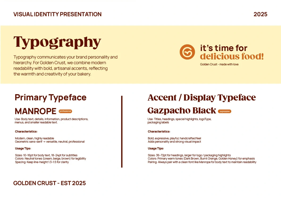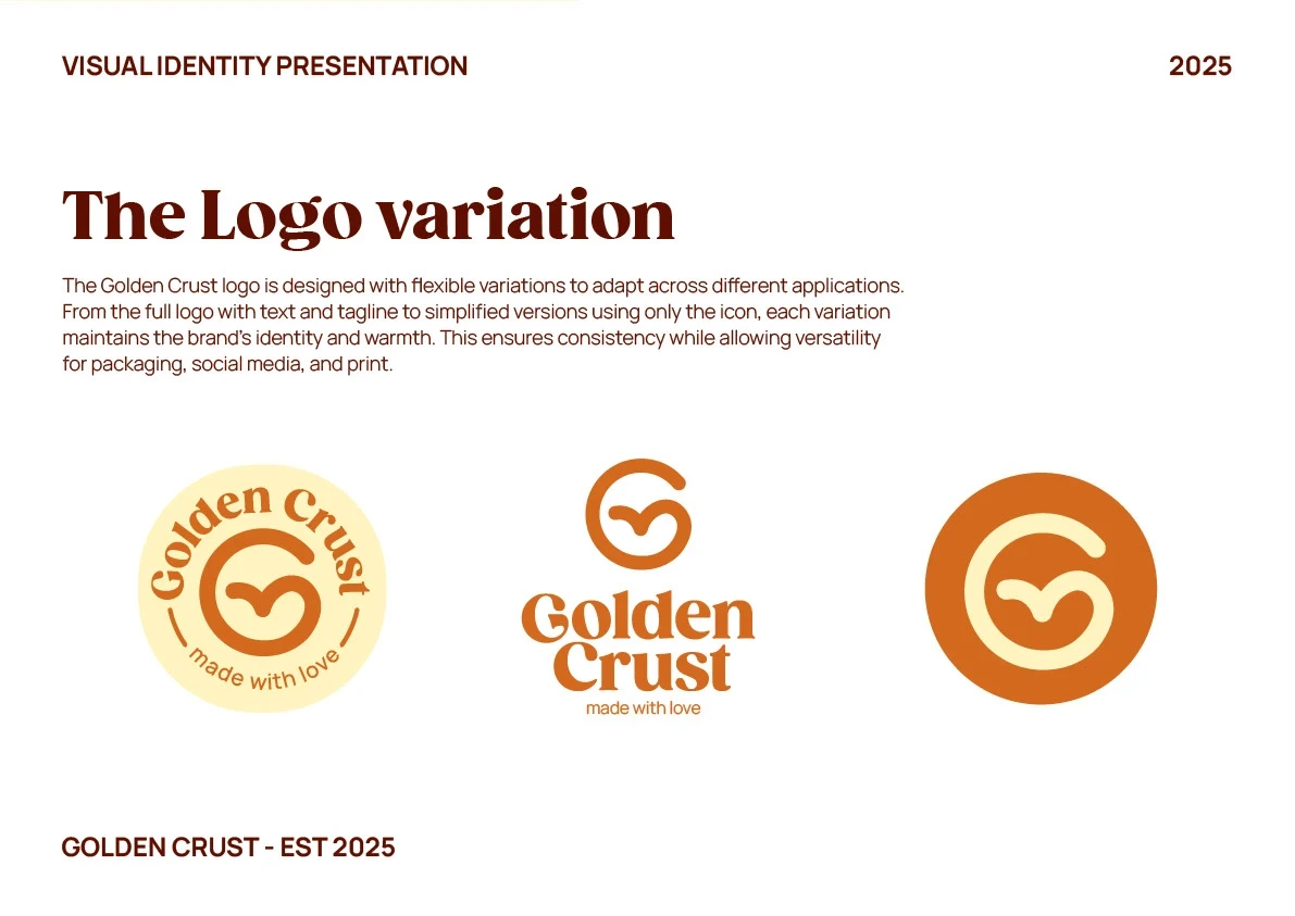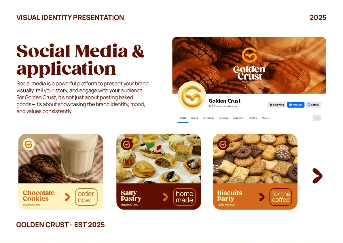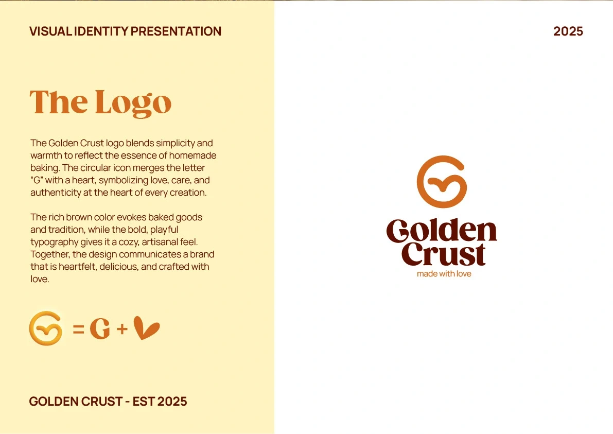 The Golden Crust identity blends simplicity and warmth to reflect the essence of homemade baking.